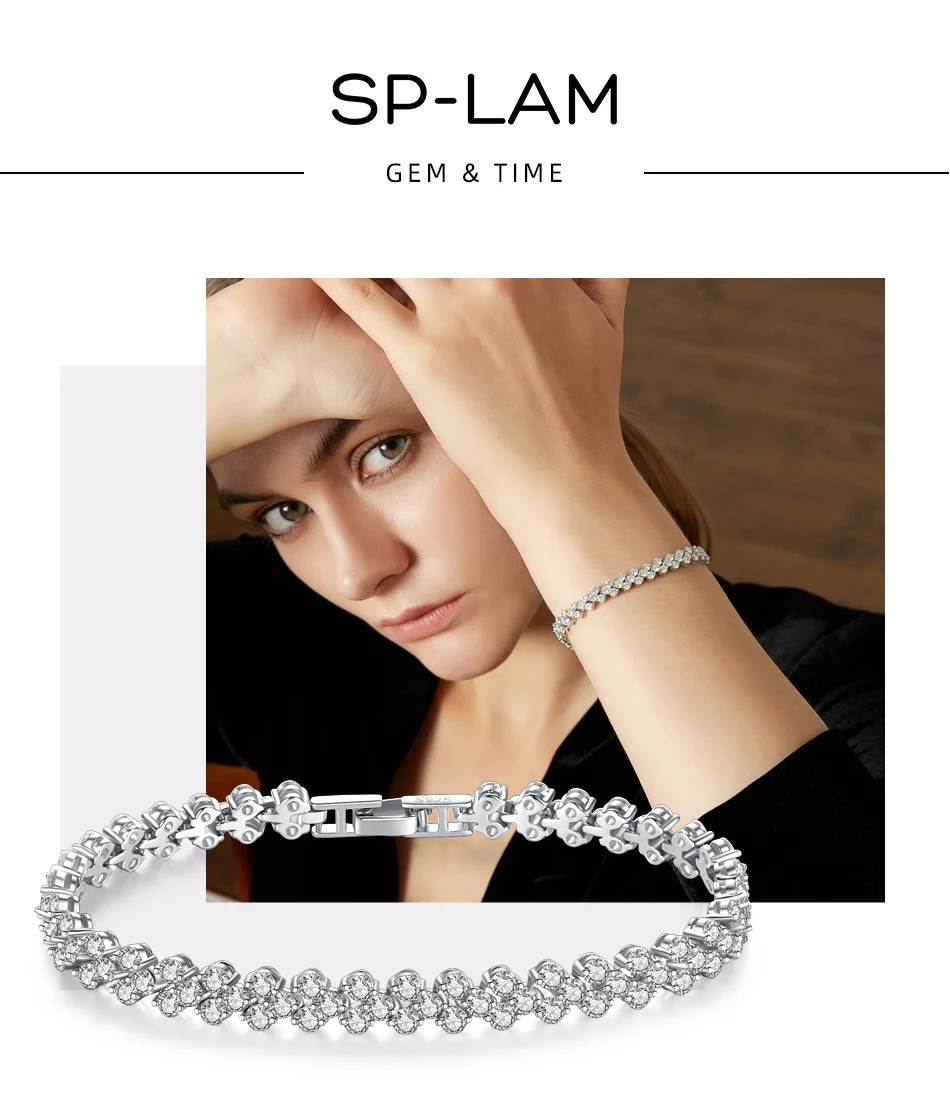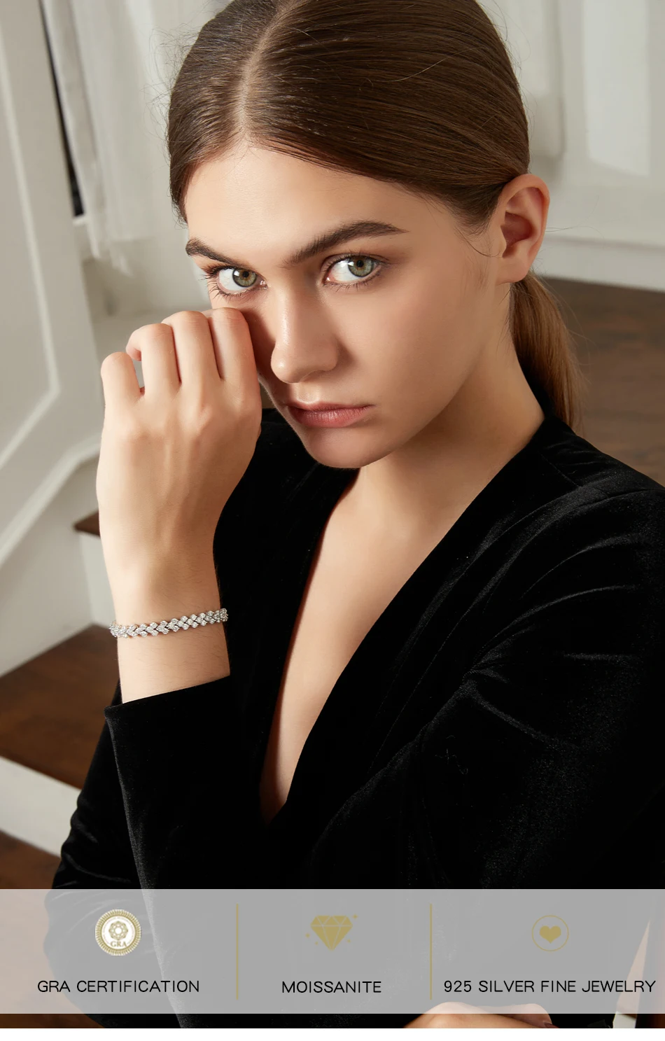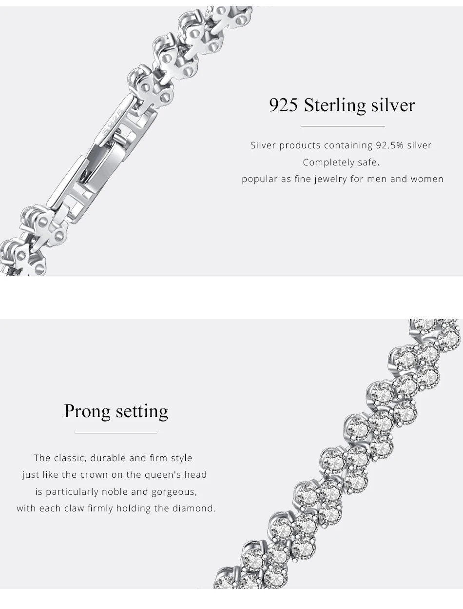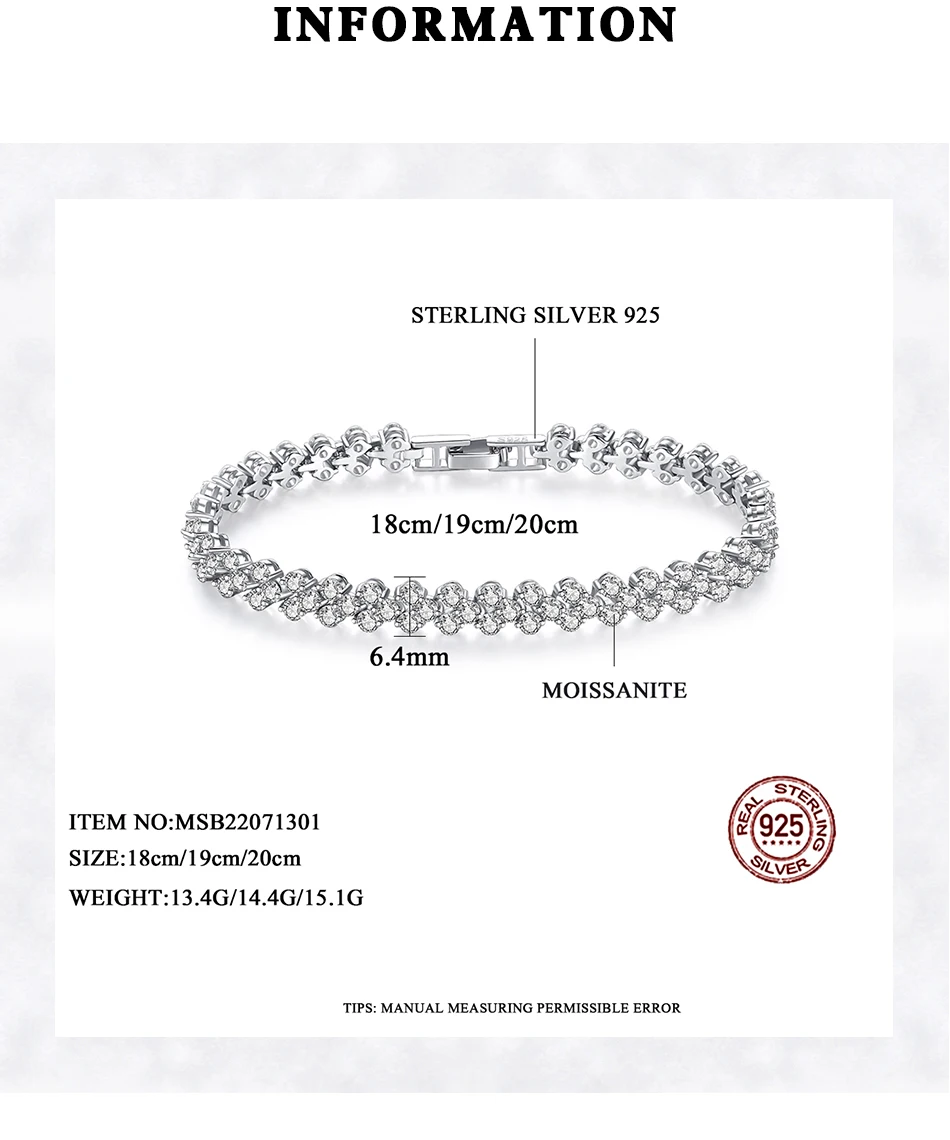 925 пробы Серебряный браслет для женщин роскошный моиссанит зубец Установка Сердце римские романтические вечерние очаровательные браслеты юбилей