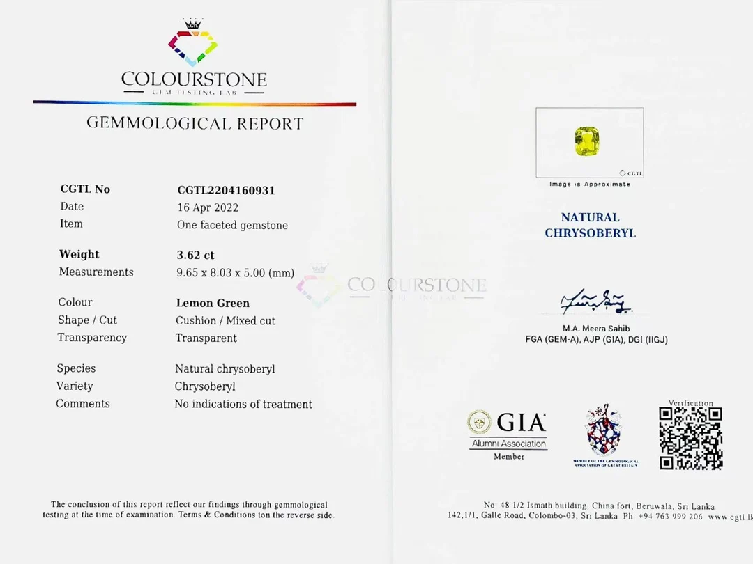 Драгоценный камень: натуральный хризоберил