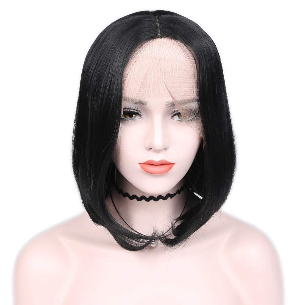 Парики из синтетических волос Wignee для женщин, натуральные черные прямые волосы, средняя часть, парик Боб, 3 расчески, термостойкие искусственные волосы, парик