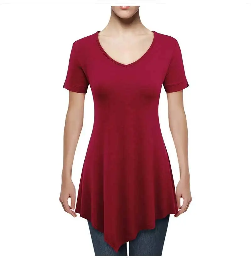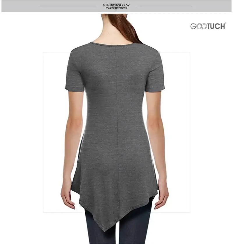 Длинная футболка женская летняя повседневная рубашка с коротким рукавом черный серый асимметричный подол топы размера плюс 5XL 6XL женская футболка G-2545