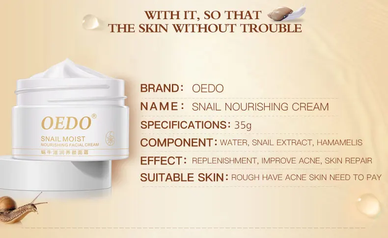 Содержит экстракт улитки, его текстура мягкая и влажная с нежным и мягким прикосновением и легко впитывается кожей. Это может помочь улучшить тусклую кожу, что пополняет влагу и питание, чтобы защитить сухую и грубую. При борьбе с морщинами для упругой нежной кожи, это также позволит сохранить увлажнение кожи, оставляя вашу кожу влажной и гладкой с молодой блестящей.