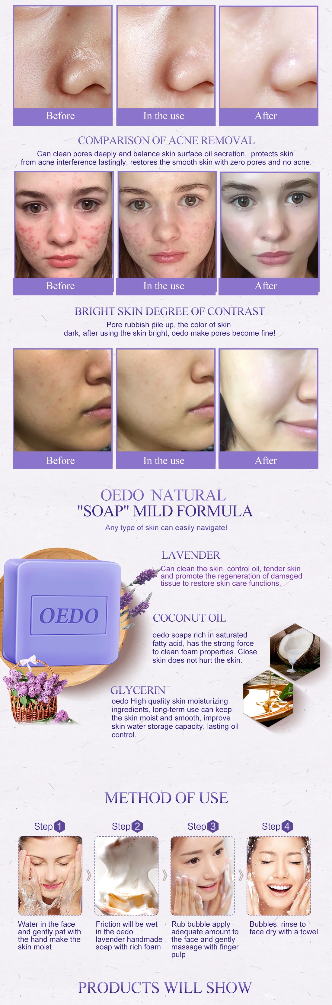 Лавандовая эссенция на естественных растительных экстрактах Бережное очищение, богатая и деликатная пена для удаления грязи и избыточной жирной поверхности кожи, стерилизация. Глубокая очистка пор помогает последующему поглощению питательных веществ в воде. После мытья кожи, яркий и блестящий цвет лица.