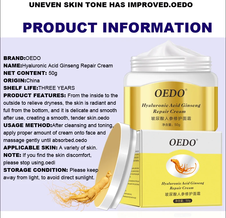 Гиалуроновая кислота с питательной, увлажняющей ролью кожи, с эссенцией экстракта женьшеня, светильник на ощупь и легко впитывается изнутри, чтобы облегчить сухость, кожа с нижней части увлажняет, с нежностью и гладкостью, чтобы создать как можно более мягкую водную и хорошую кожу.