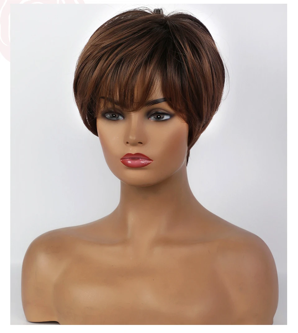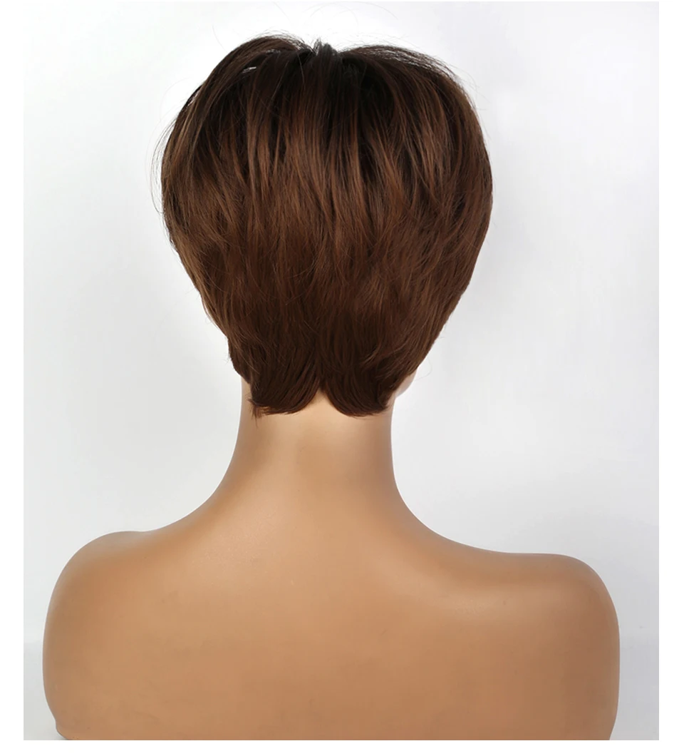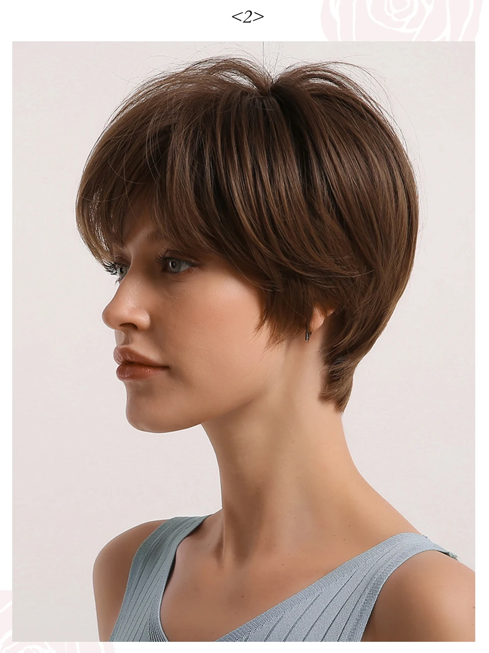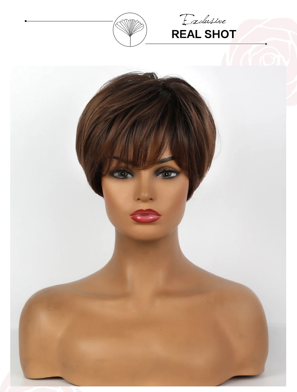Блондинка Единорог короткие прямые волосы парик пушистые Многослойные коричневые синтетические волосы с боковой челкой термостойкие полные Искусственные парики