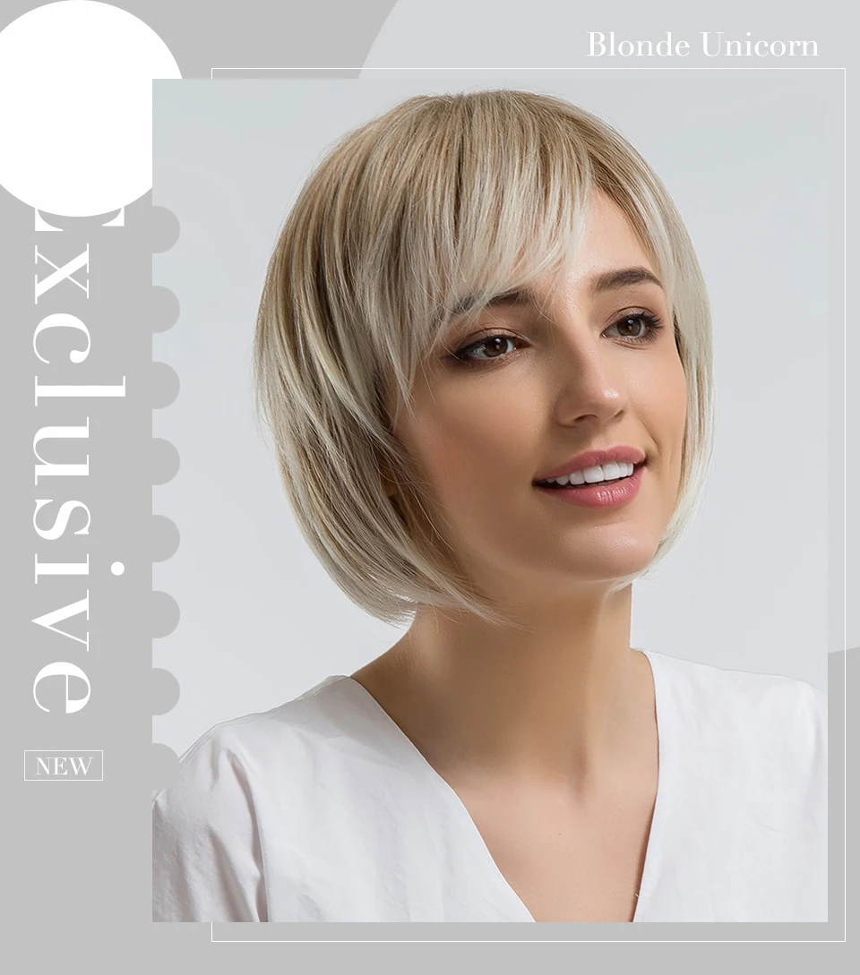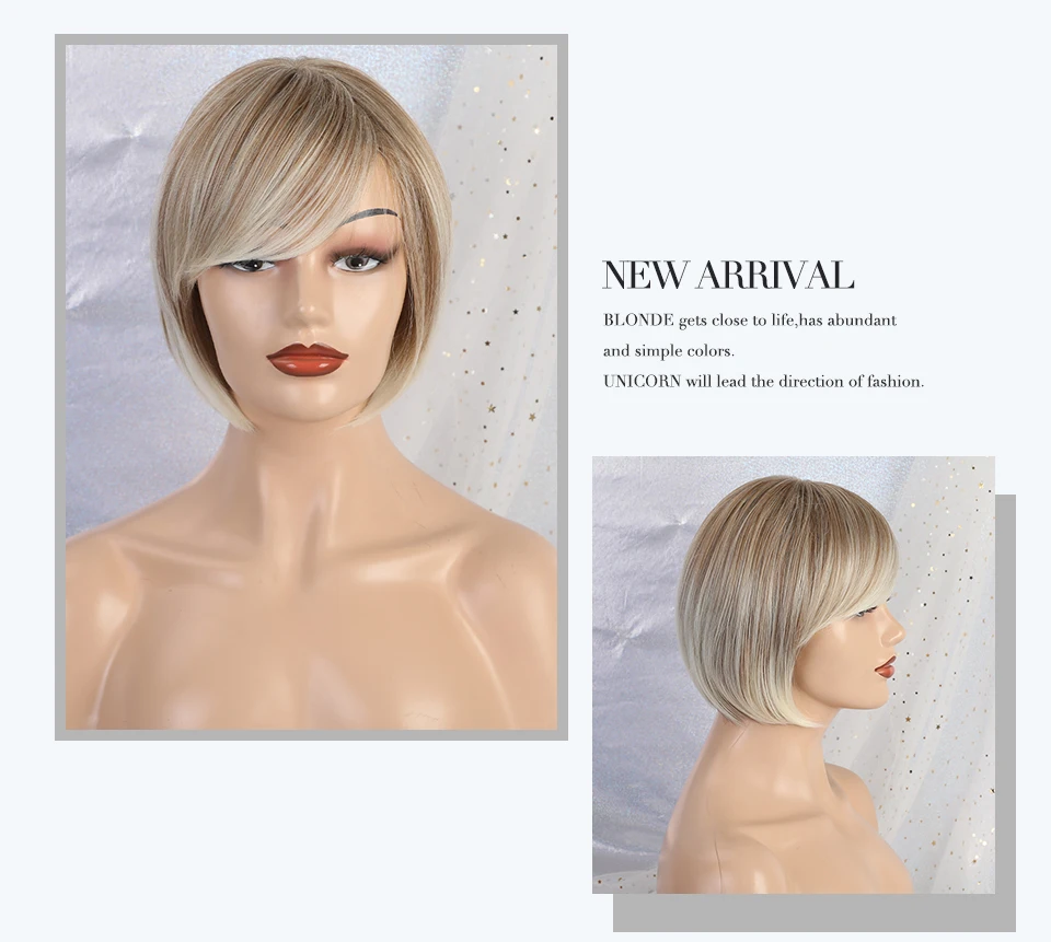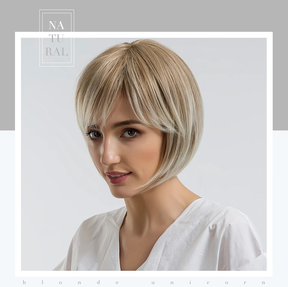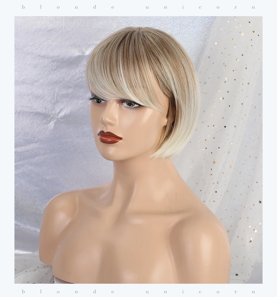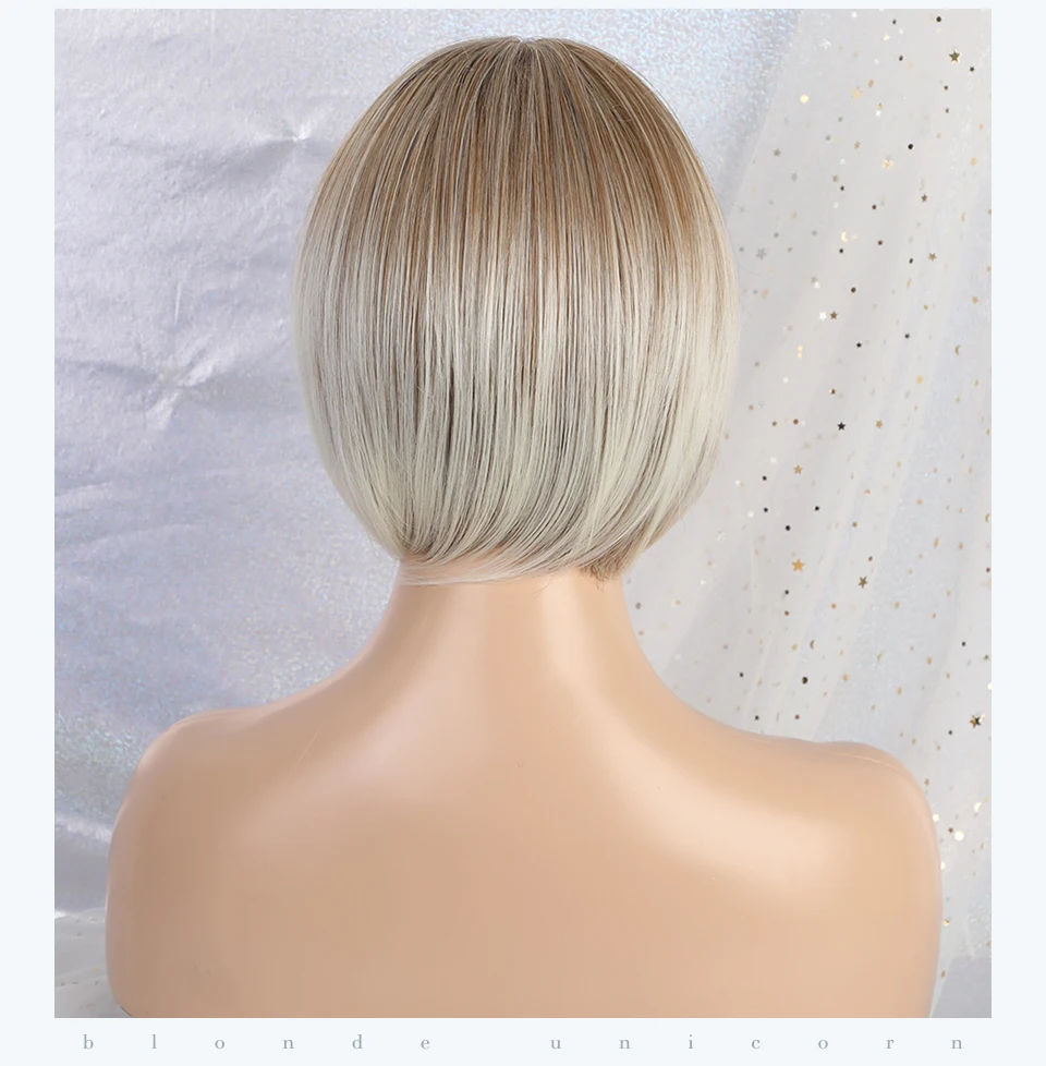 Парики из синтетических волокон блонд Единорог 10 дюймов блонд Омбре боб парики для женщин с боковой челкой волосы высокая температура волокна прямые парики