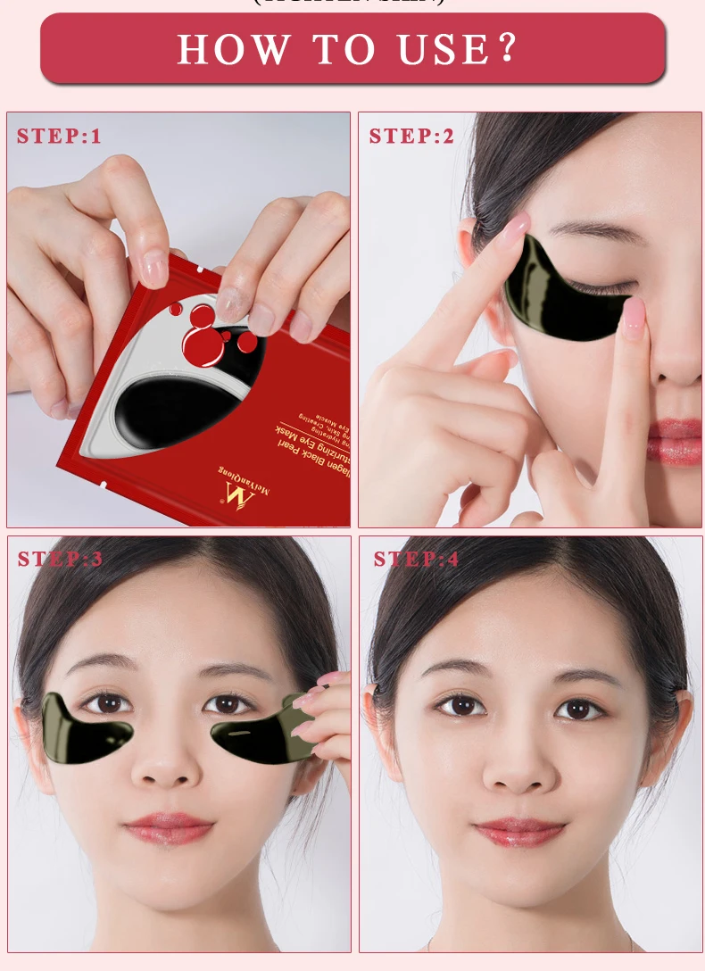 1. Очистите кожу глаз теплой водой. 2. Откройте посылка и выньте пару масок для глаз. 3. Аккуратно прижмите наклейку для подводки глаз, чтобы она полностью сидела вокруг глаз. 4. Подождите около 15-30 минут и удалите его. Аккуратно нажмите на кожу глаза, чтобы полностью впитать ее.