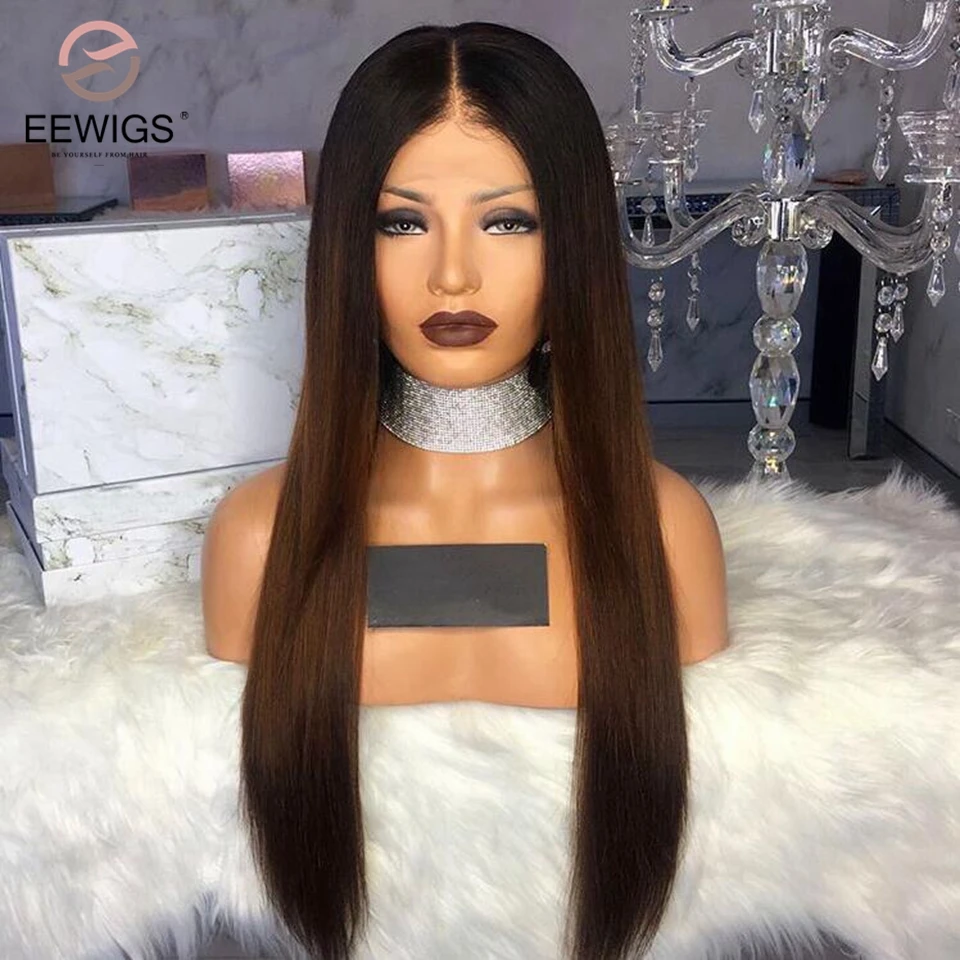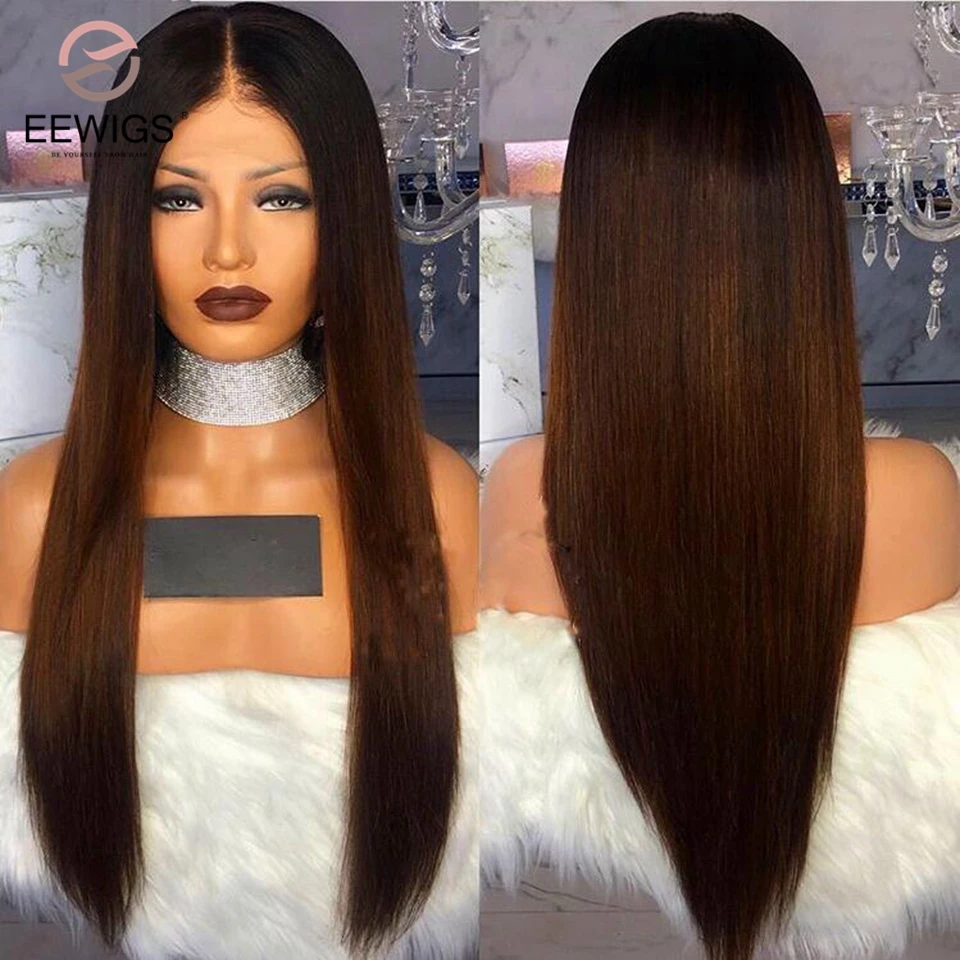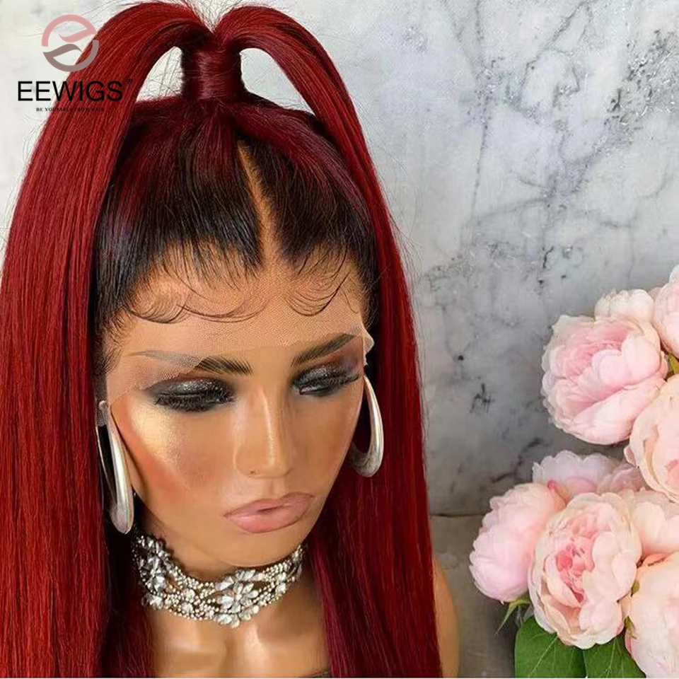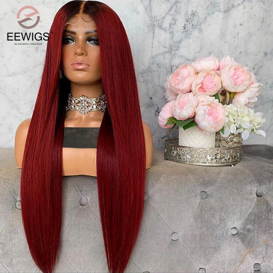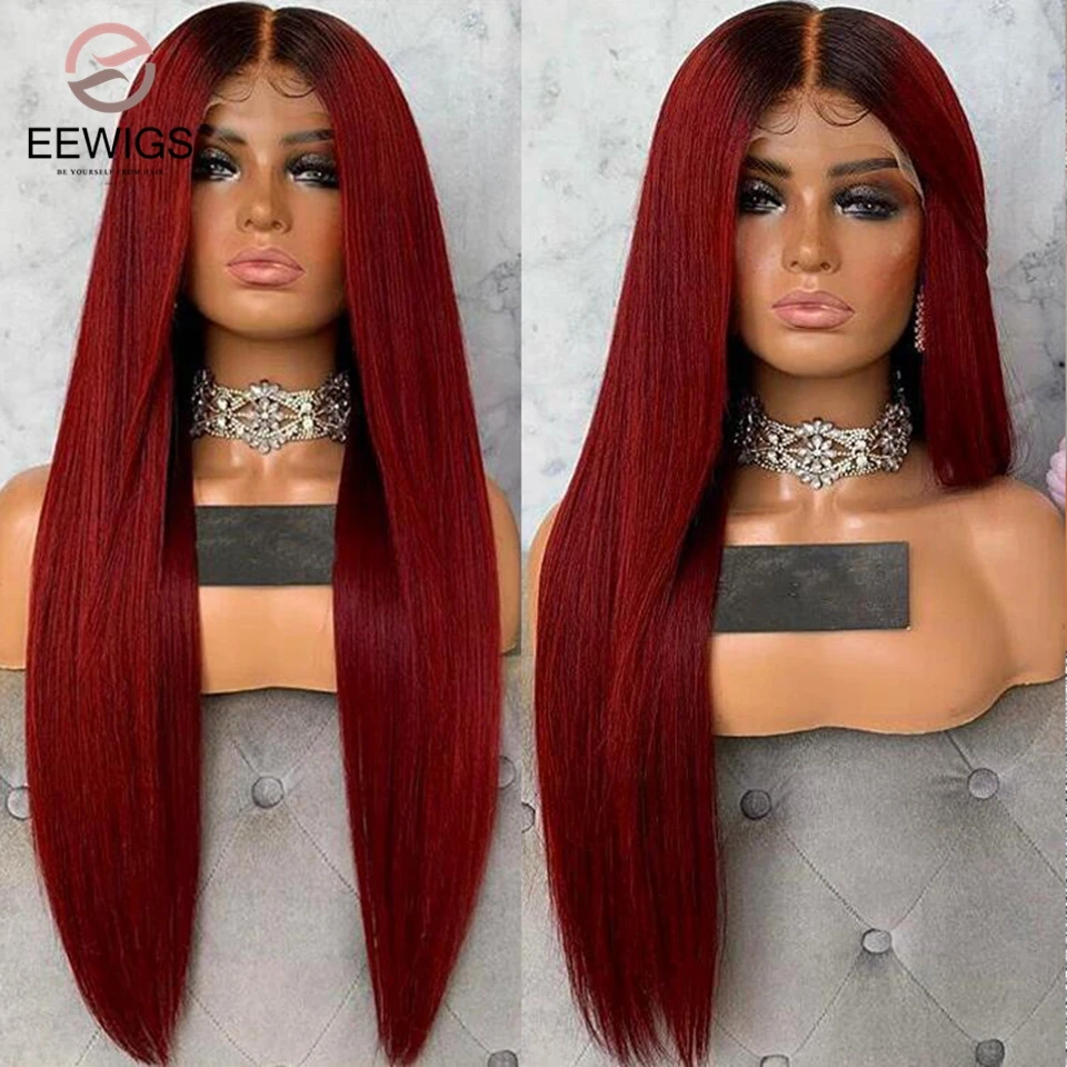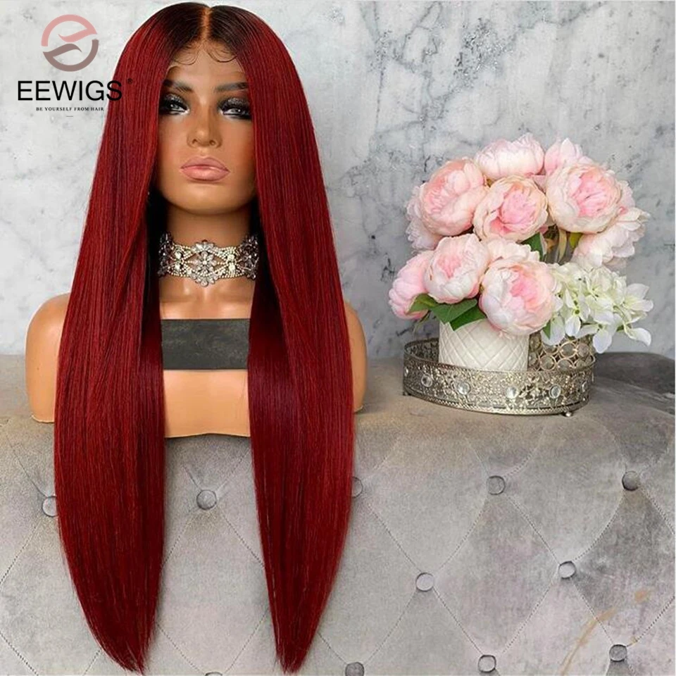 Парики EEWIGS прямые бордовые кружевные передние парики термостойкие длинные черные парики без клея Омбре коричневые красные синтетические парики для черных женщин