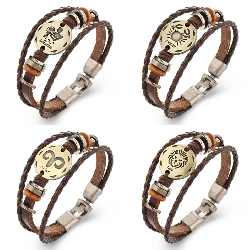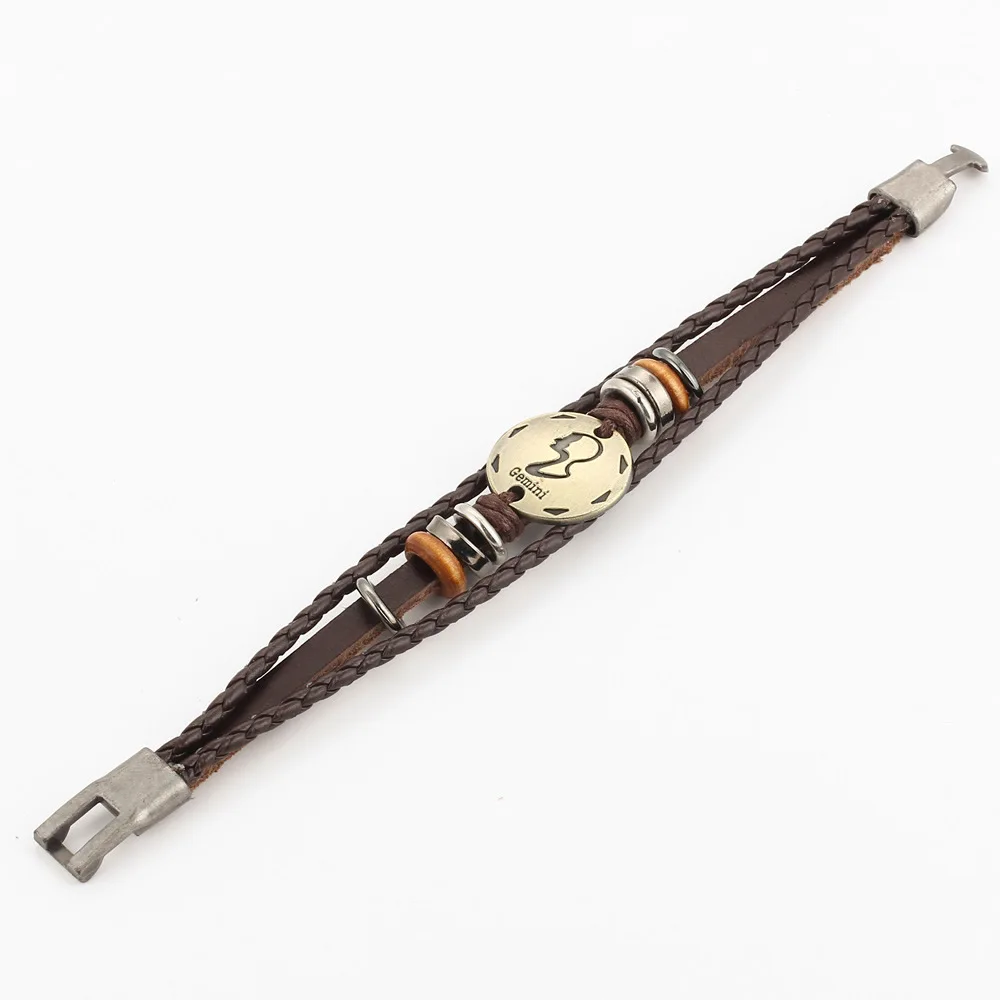 Воловьей кожи, новинка, с вощеный шнур хлопка и из PU искусственного материала, дерева и сплава цинка, покрытие, зодиака ювелирными изделиями & различные модели для выбора, не содержит никель, не содержит свинца и кадмия, Продан через приблизительно 7 дюймовый Strand