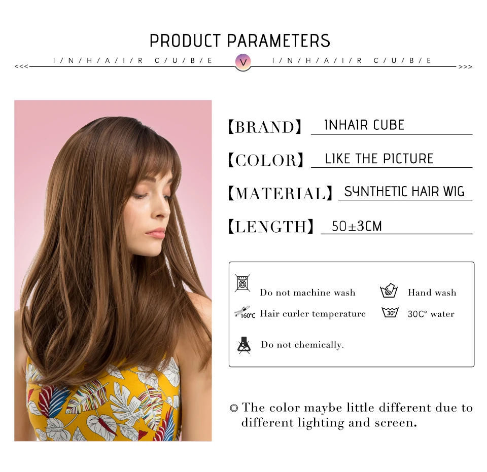 INHAIR CUBE 18 "темные корни Омбре парик Синтетический коричневый длинные прямые волосы парики с челкой Реалистичная имитация кожи головы боковая часть