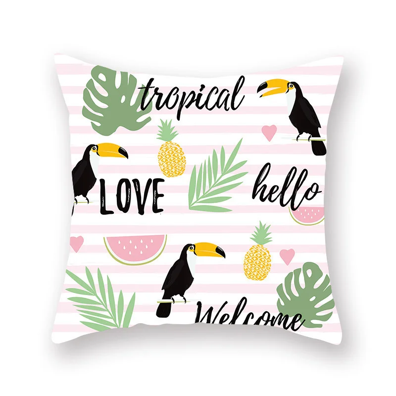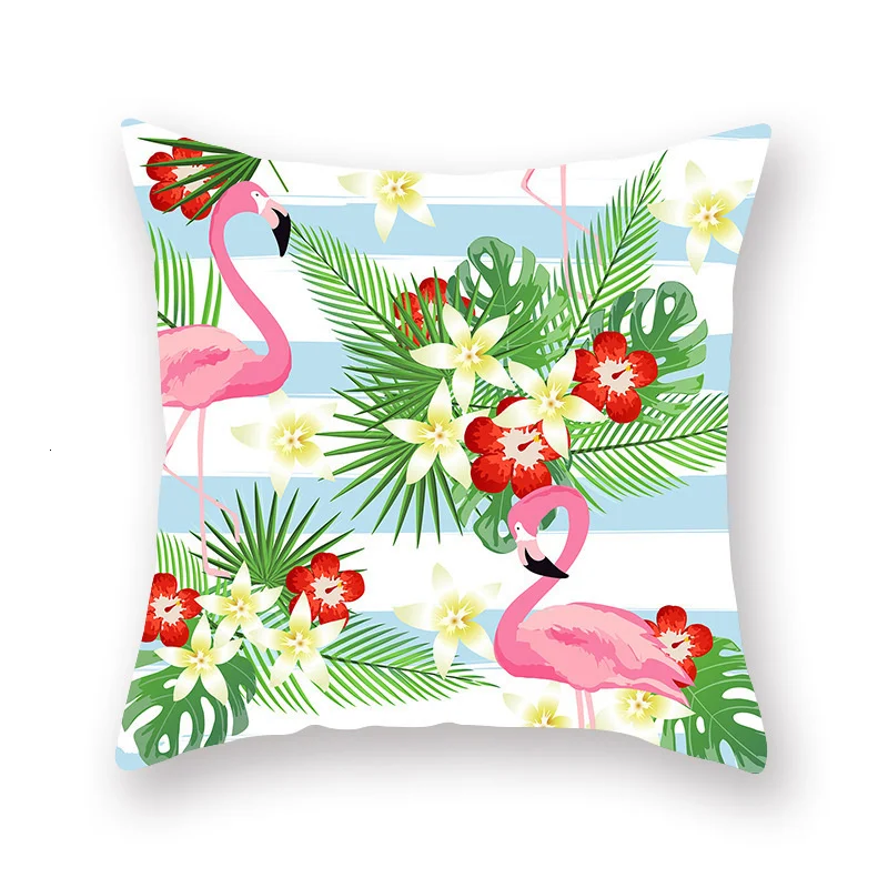 Декоративный чехол для подушки, Летний чехол для подушки с изображением фламинго, цветов, Листьев, для дома, квадратная подушка, наволочки 45*45 см