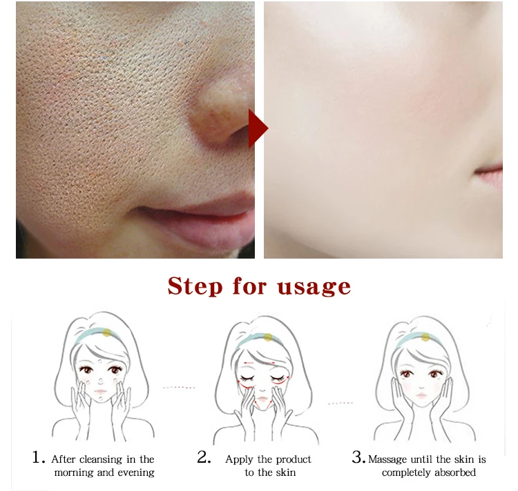 1. После очищения лица и освежения, 2. Нанесите необходимое количество акне, устраняя эссенцию равномерно на область лицевых акне, 3. Погладьте его до впитывания.