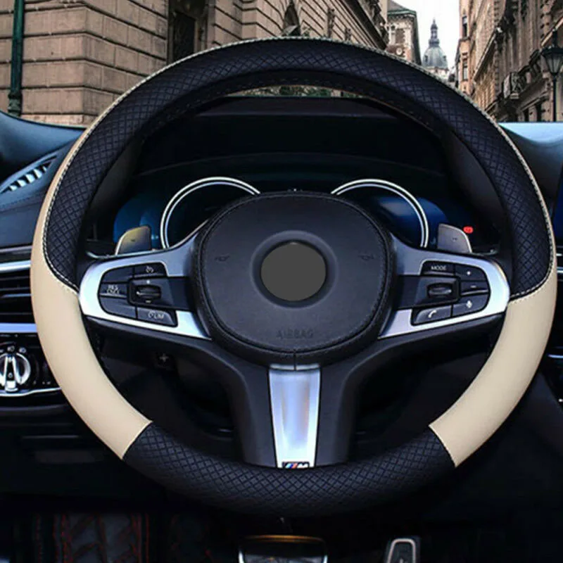 * Кожаный Автомобильный руль Крышка Анти-протектора Fit 38 см бежевый новый