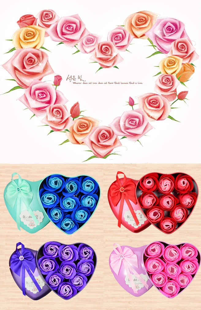 3/6/9 шт. мыло в виде лепестков роз в сердце BoxRose, украшенное цветочными лепестками, мыльным раствором на нем, идеально подходит для быстрого Ручная стирка или класса «Люкс».