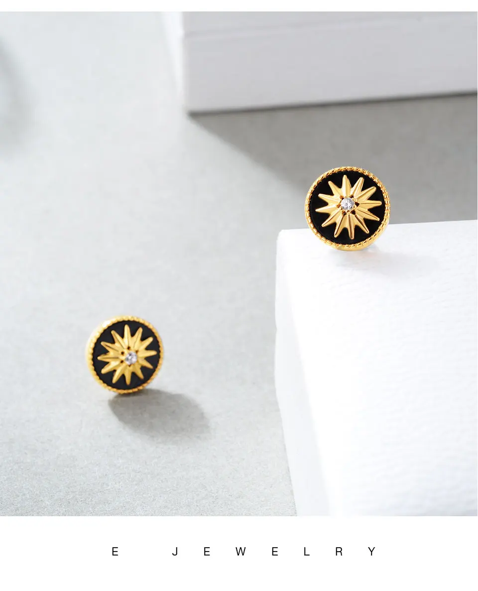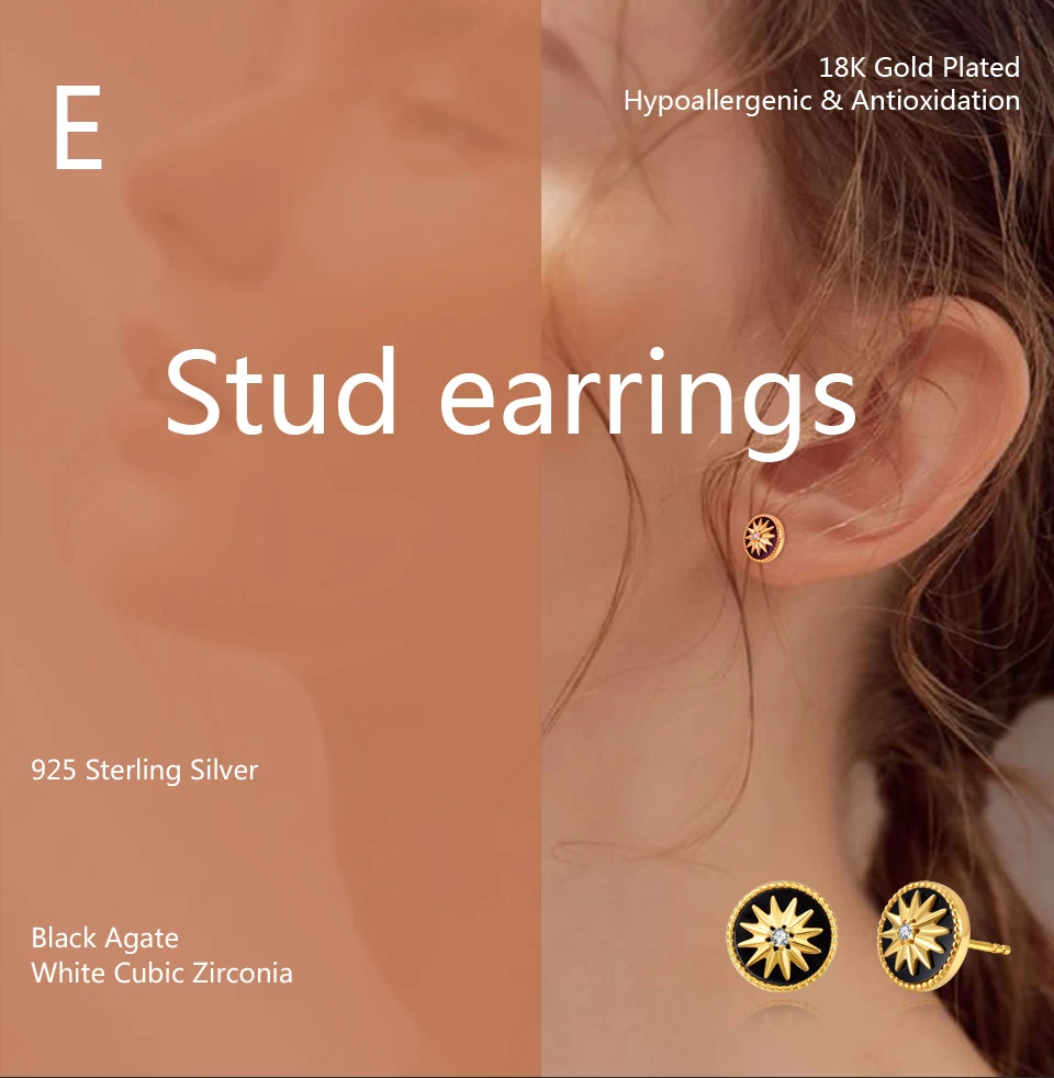 Женские солнечные серьги из стерлингового серебра 925 пробы для чувствительных ушей, с черным агатовым камнем и фианитом. Диаметр поверхности: 0,37 ''. Средний вес: 1,7 г.