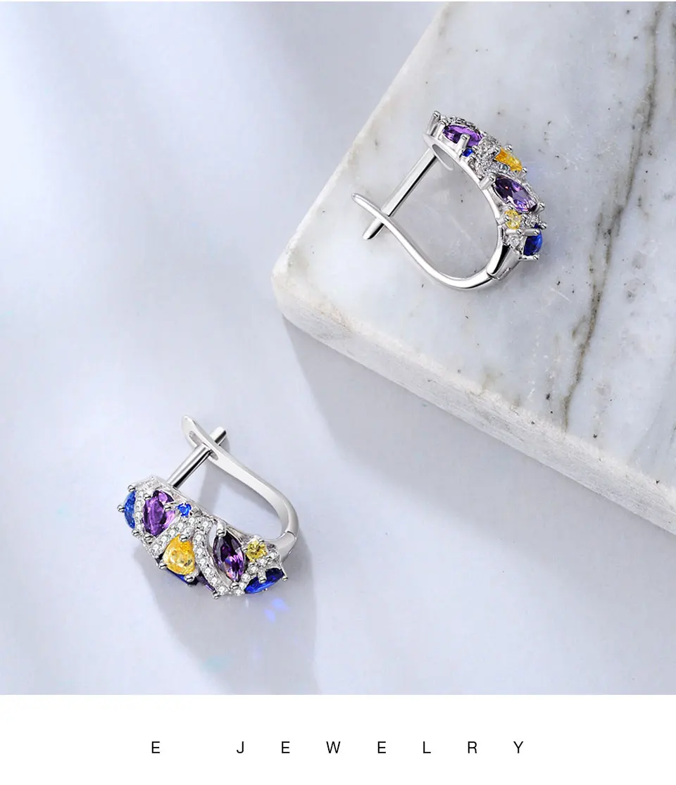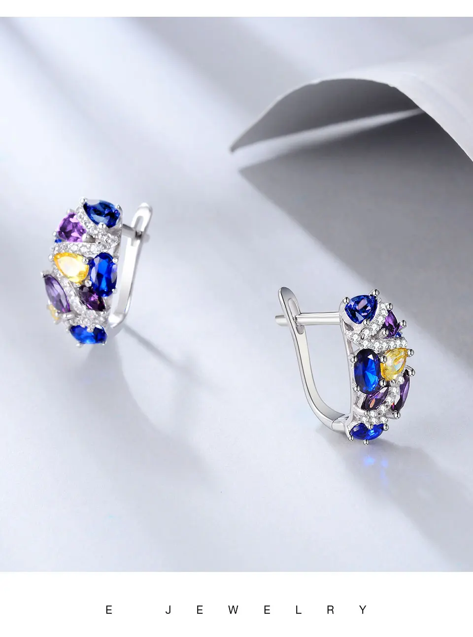 Женские серьги-кольца из стерлингового серебра 925 пробы, гипоаллергенные. Точечный цветной синтез драгоценных камней, простой и элегантный. (белый кубический циркон/фуксия кубический циркон/искусственный синий шпинель камень/золотой кубический циркон). Размер: 0,68 ''* 0,37''. Средний вес: 4,23 г.
