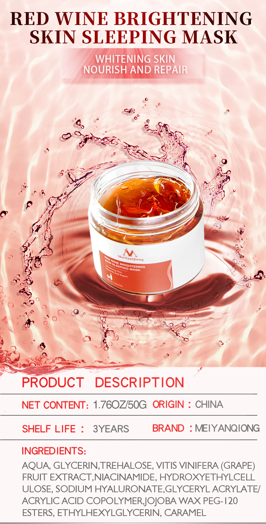 Название: красно-винная Осветляющая Маска Для Сна
