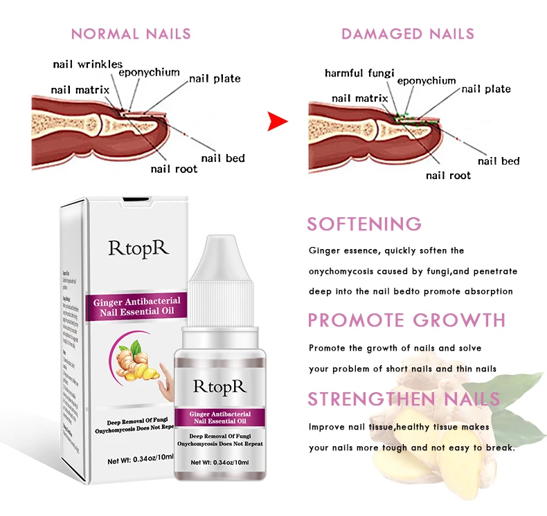 Этот продукт богат экстрактом имбиря, он подходит для онихомикоза, вызванного грибками, клещами для ногтей, белыми ногтями, желтыми ногтями, черными ногтями, антиброневыми, остаточными ногтями, ногтями, И палубы. Длительное использование, помогает ногтям полностью впитывать питательные вещества, помогает удалить поврежденные слои и восстанавливает внешний вид здоровых ногтей.