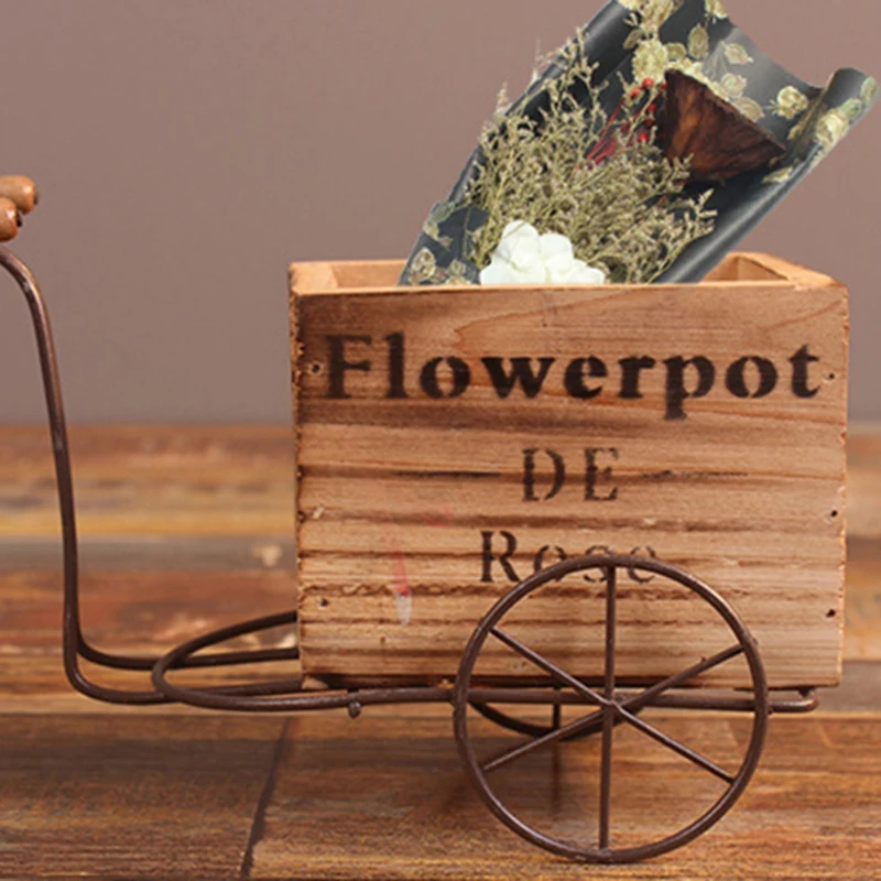 ABLA деревянная модель мотоцикла с коляской цветочный горшок из кованого железа велосипедный Цветочный Стенд для хранения в помещении домашний сад Настольный Декор ремесла G