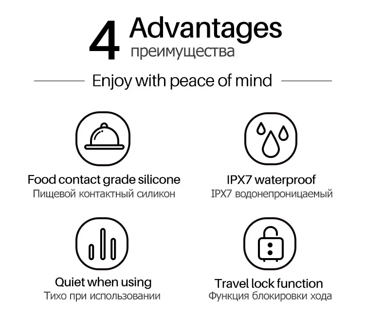 Бесшумный, водонепроницаемый: пожалуйста, не забудьте затянуть крышку аккумулятора при использовании или очистке в воде: аккумулятор AAA (не входит в комплект) обратите внимание, что при вставке батареи, обязательно затяните крышку, иначе она не будет вибрировать