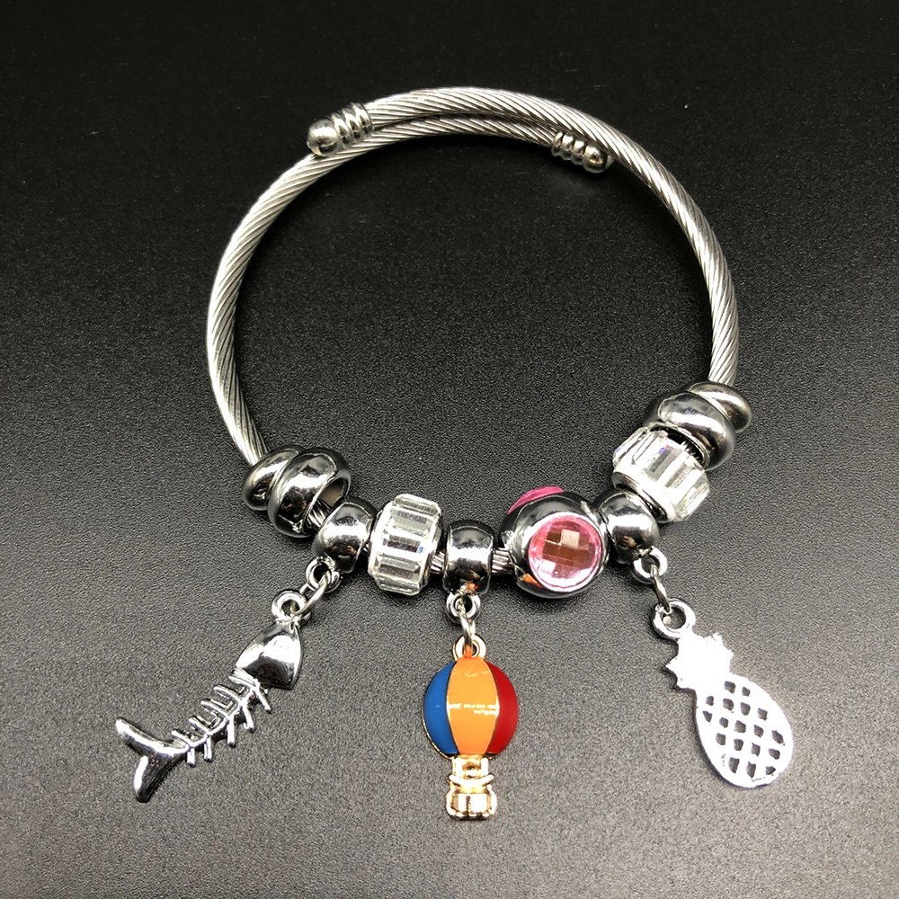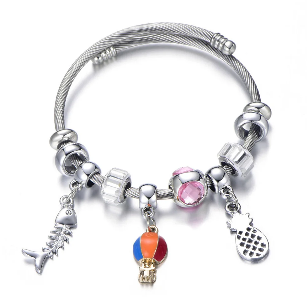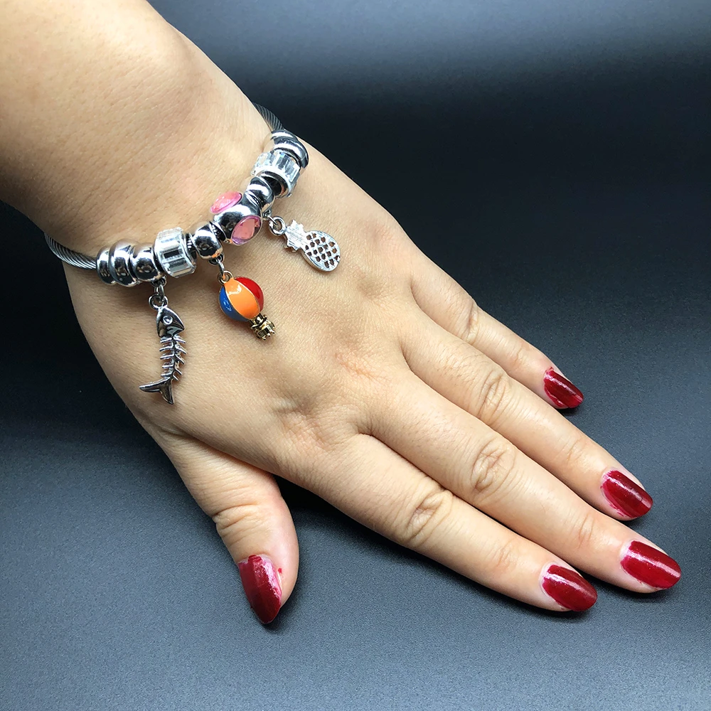 Винтажный серебряный браслет-цепочка из нержавеющей стали с воздушным шаром эмалевые бусины брендовые браслеты и браслет для женщин