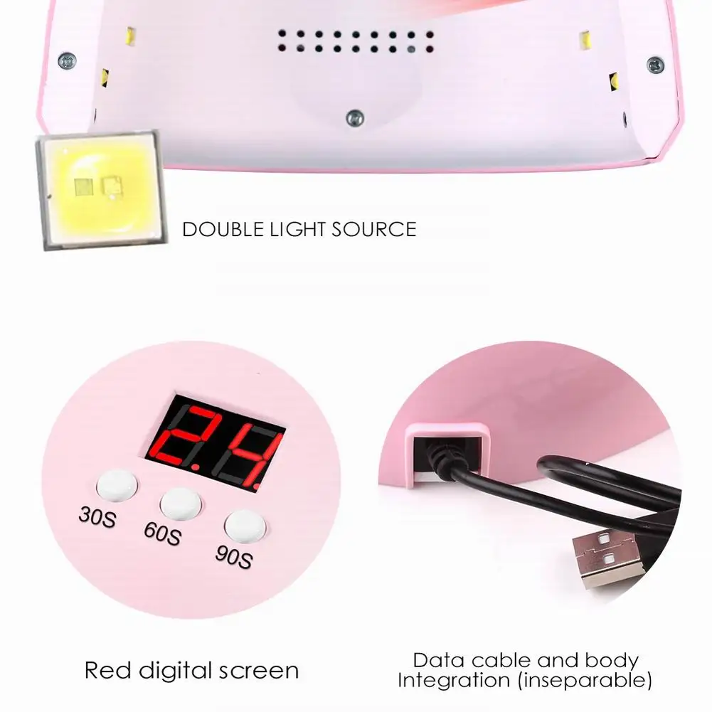 Описание: 1. Тип кожи: любой тип кожи 2. Классификация продуктов для ногтей: светильник для ногтей 3. Особенности косметики: светодиодный светильник имеет быстрый эффект 4. Характеристики продукта: 180*150*88 мм Особенности: 1. Встроенный 21 налобный фонарь: ЛАМПОВЫЙ бисер длительный срок службы, использование 365 + 405 мм ламповых бусин разумное распределение, более точное освещение на каждом пальце 2. 30S высокая эффективность и быстрое высыхание: 36 Вт Мощный двойной светильник с бусинами быстрое высыхание всего клея до 6-минутного срока сушки 3. Интеграция кабеля передачи данных и фюзеляжа (неотделимый) 4. Двойной светильник более полезен 5. Встроенный 21 налобный фонарь, бисер, долгий срок службы, используя 365 + 405 мм ламповый шарик, разумное распределение, более точное освещение на каждом пальце. Упаковочный лист: Машина * 1 USB Дата-линия * 1 Руководство на английском языке * 1