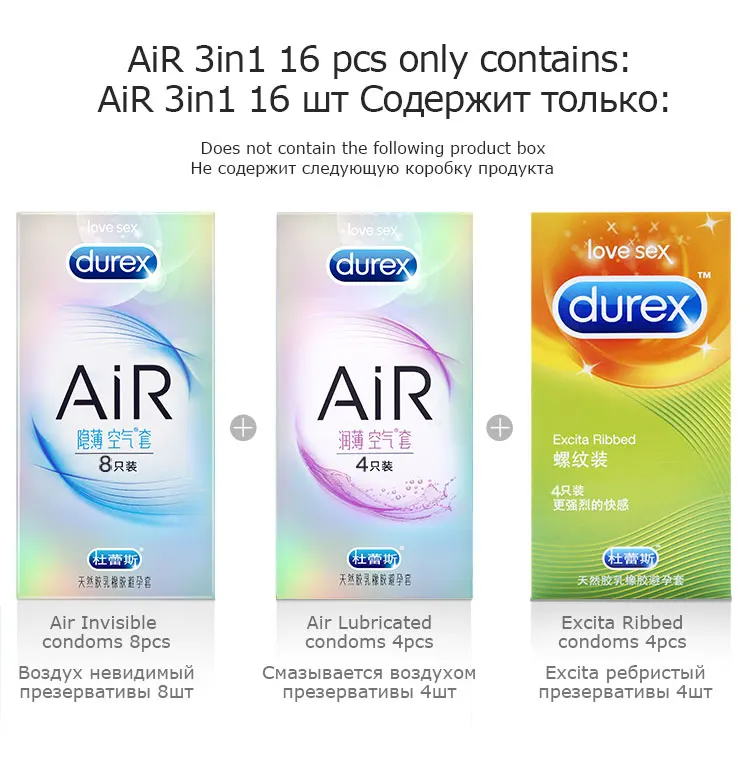 Durex AiR 3в1 Невидимый Ультратонкий презерватив натуральный латекс Резиновый рукав для пениса для взрослых товары для мужчин сексуальные игрушки товары Интимная близость