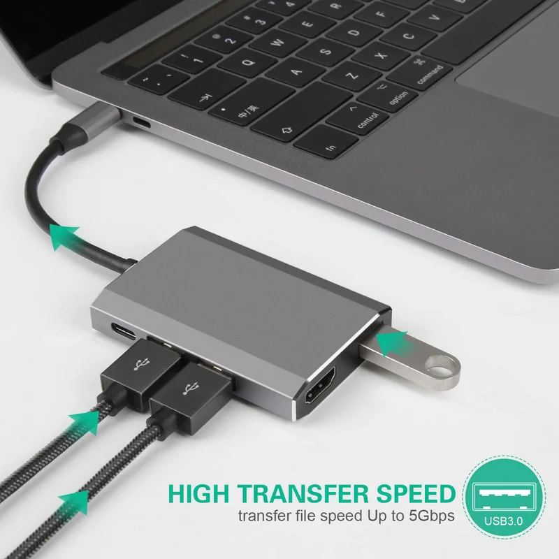 5 в 1 Многофункциональный USB-C концентратора: продлить три USB 3,0 порта, один порт USB Мощность доставки Тип-C зарядки, один выход HDMI порт от одного USB-C порт или Thunderbolt 3 (USB-C) порт.