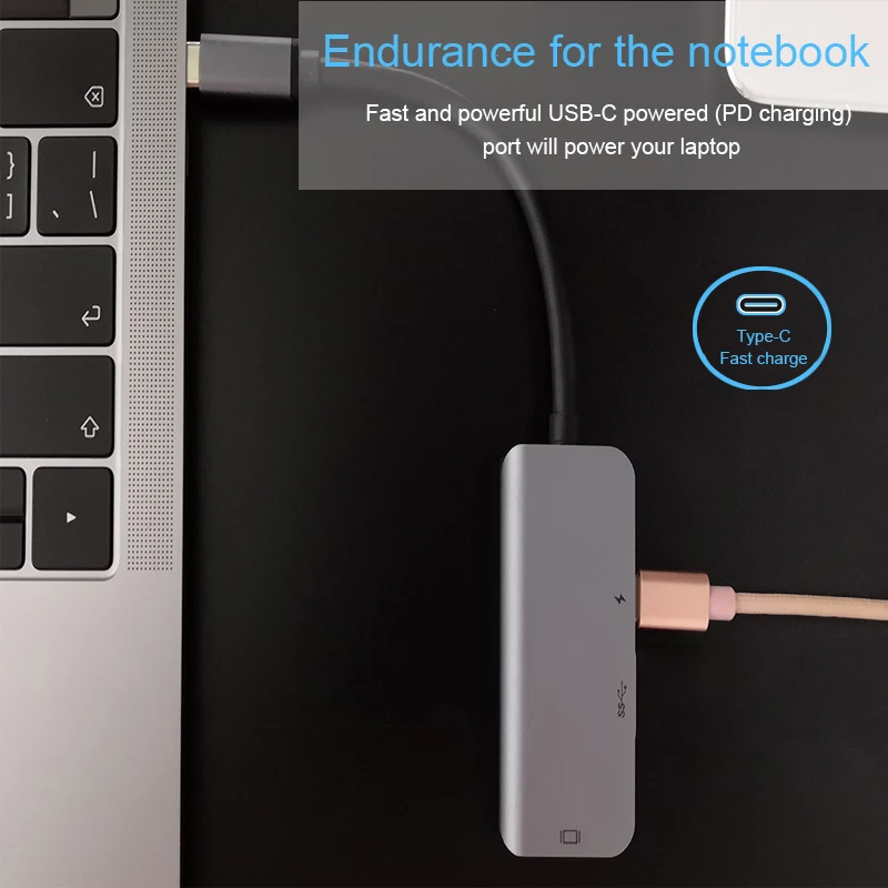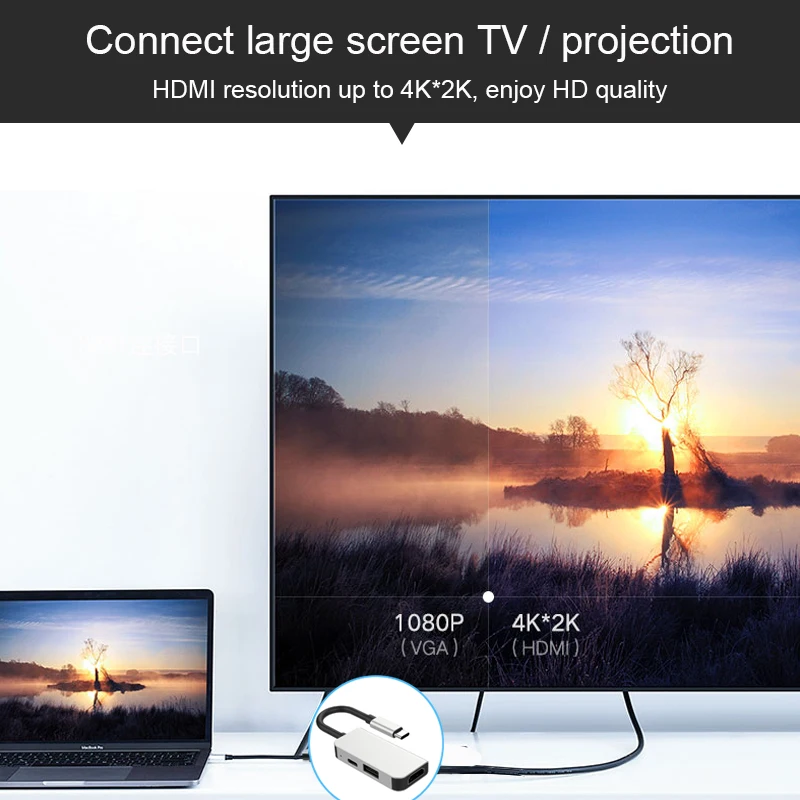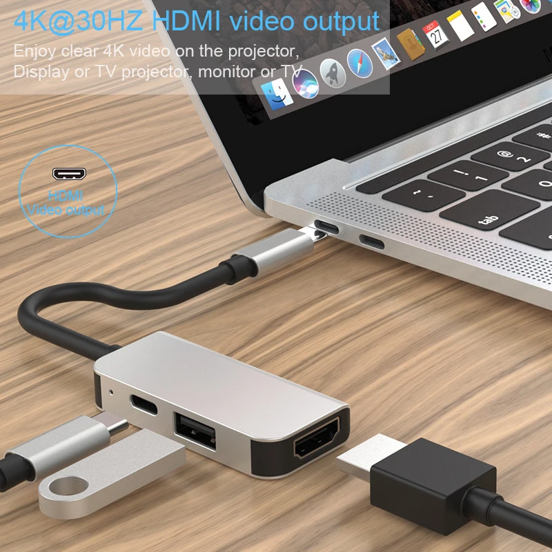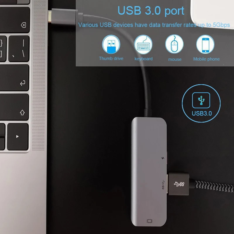 Поддержка разрешения 4 K * 2 K. Портативный концентратор USB C поддерживает разрешение видео до 60 Гц с совместимостью большинства мониторов, проекторов, телевизоров HDTV и других устройств с портом HDMI. Наслаждайтесь HD видео с семьей или друзьями