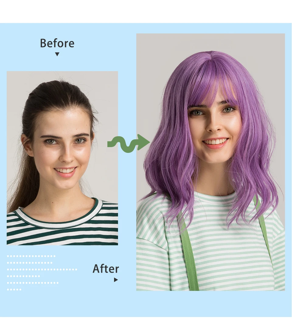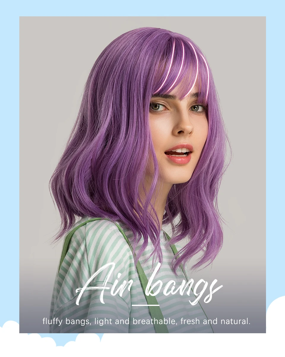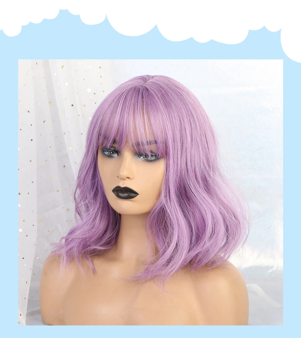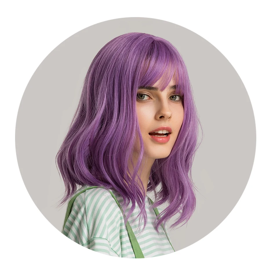 Inhaircube 14 "длинные волнистые женские синтетические парики Фиолетовый Темный 2 цвета с челкой поддельные головы естественные Повседневные Вечерние Бесплатная доставка