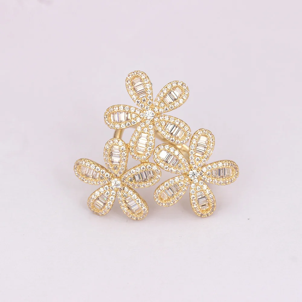 Изысканные украшения для пальцев три цветка в форме обручальные кольца классические Необычные обручальные кольца для женщин с кубический камень цирконий