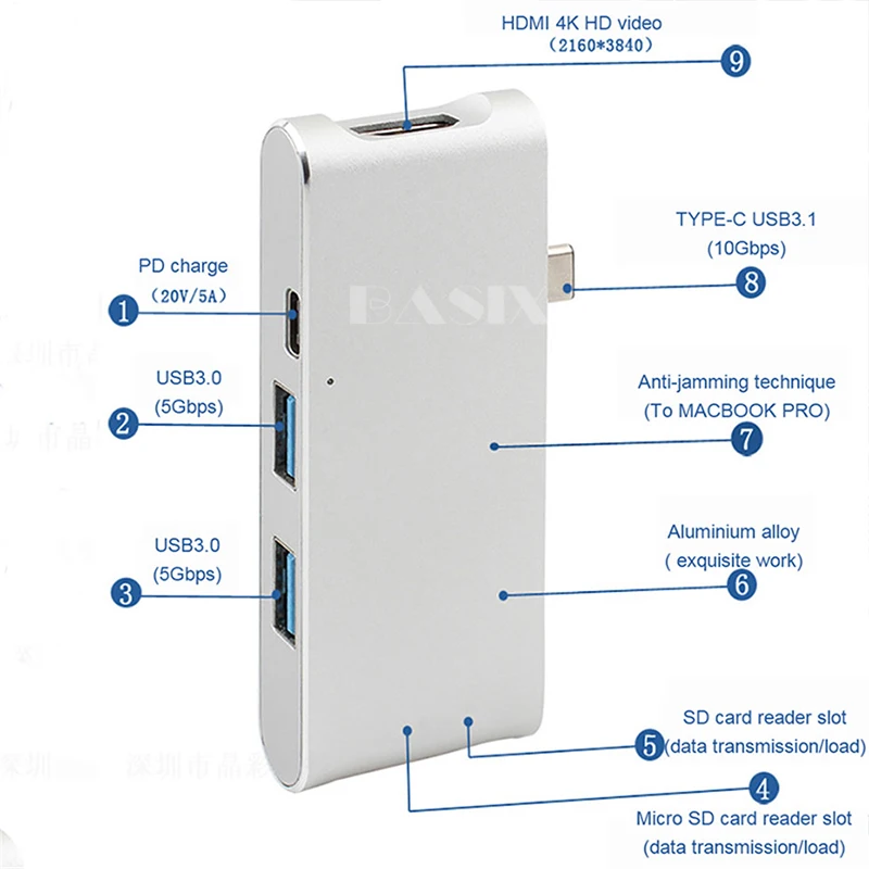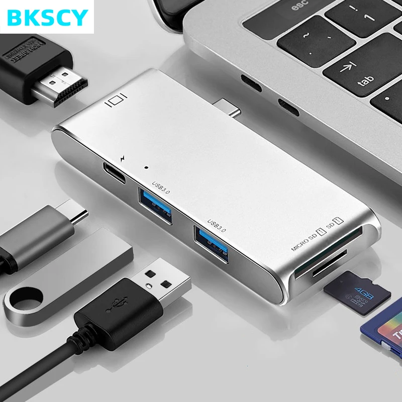 BKSCY Тип C концентратор Usb C к HDMI 4 K адаптер SD TF кард-ридер USB 3,0 концентратор type C зарядный концентратор для MacBook Pro huawei P20 USB C концентратор