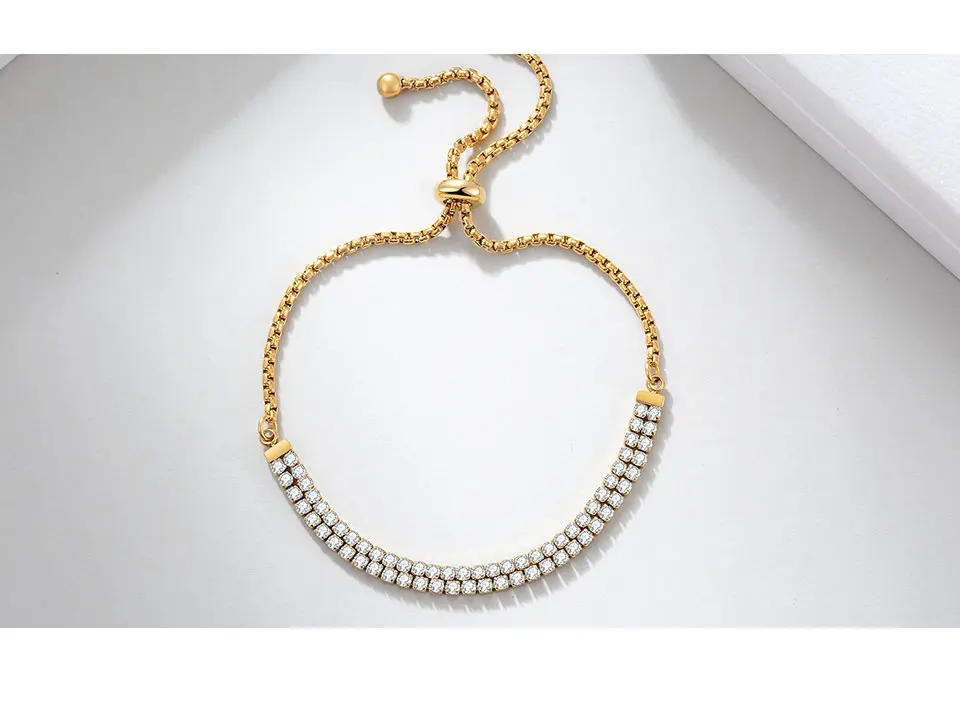 ❤Модный дизайн❤Дизайн с двумя рядами цепей. Инкрустированные великолепными кристаллами на цепочках, имеют ромбовидный блеск. Пузырьковый поперечный тип цепи, прочный и не легко сломать. Браслет в стиле Боло легко надевать и снимать.