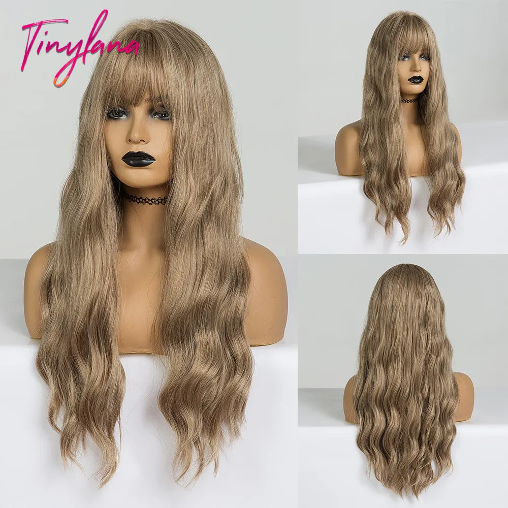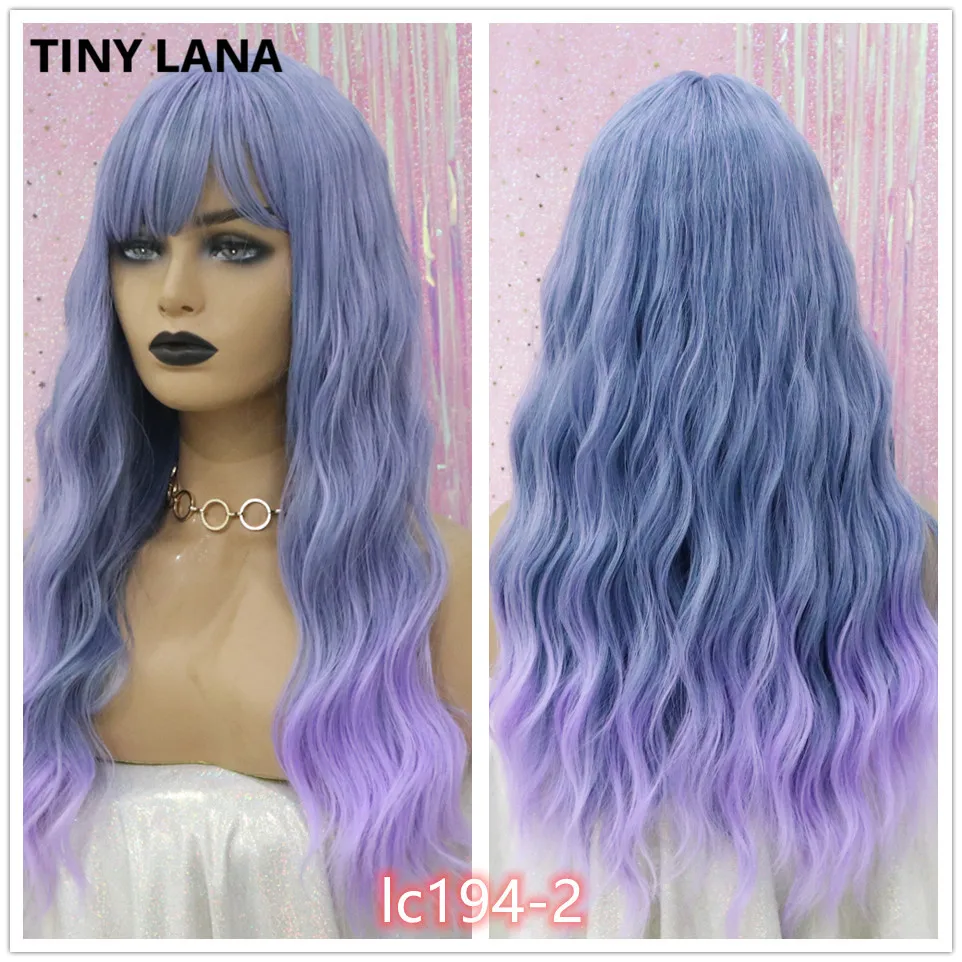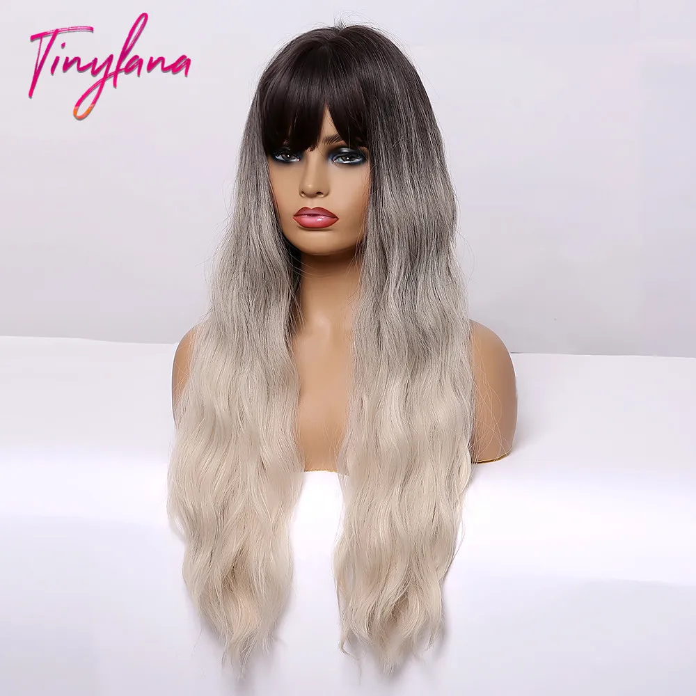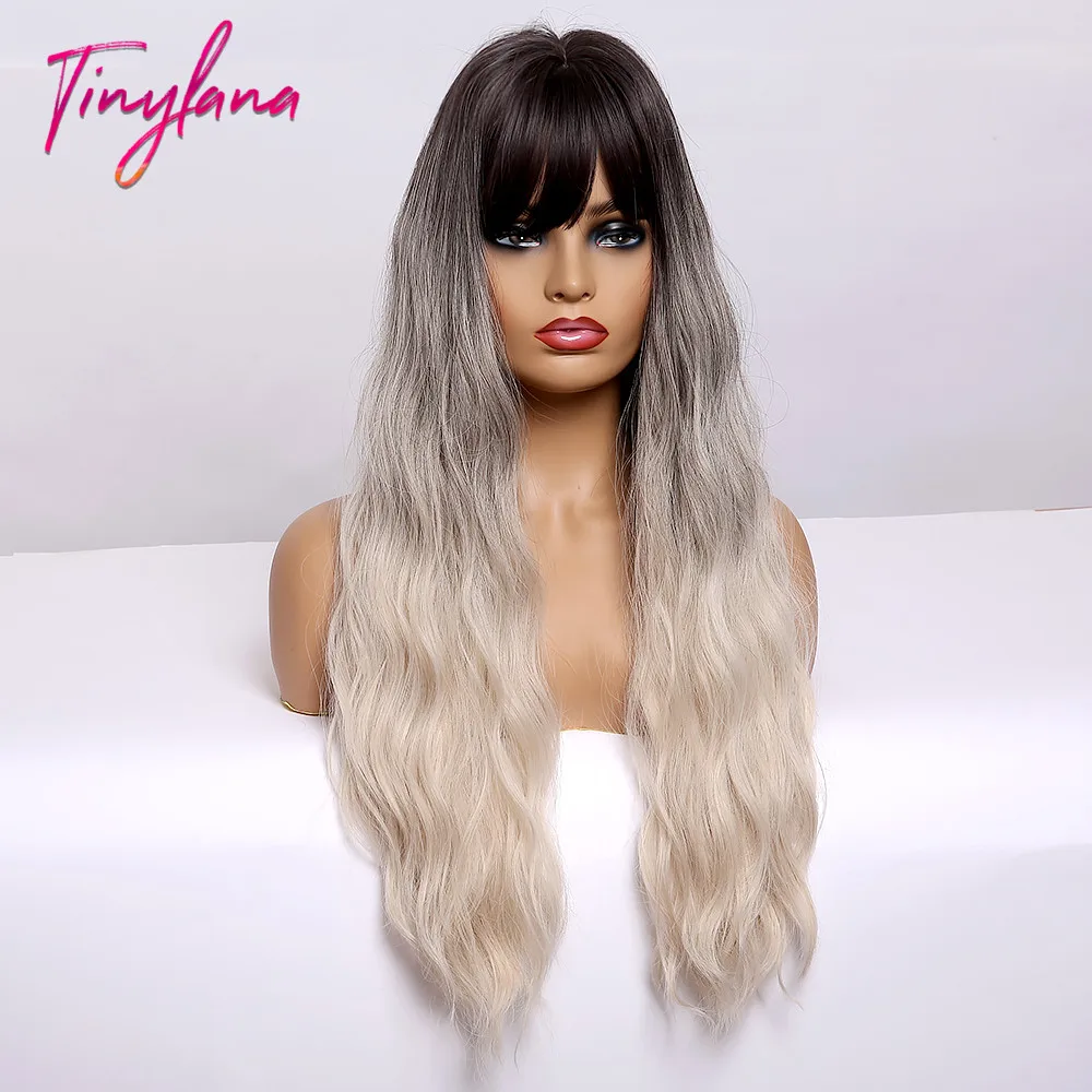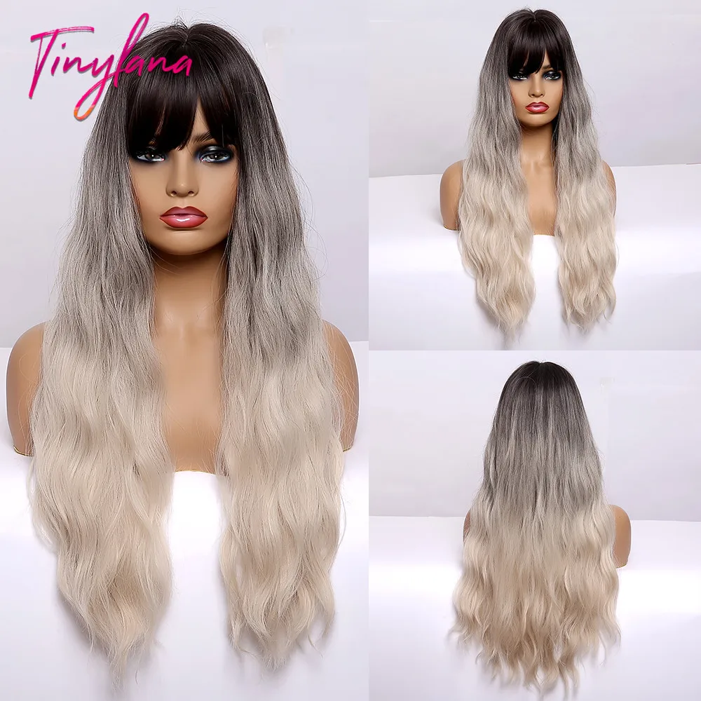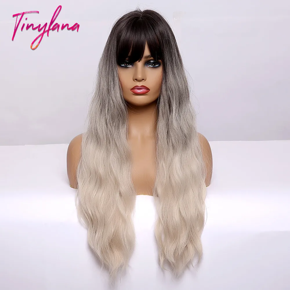 Крошечный LANA Ombre черный пепельный блонд парики с челкой длинные натуральные волнистые синтетические парики для черных женщин косплей ежедневно жаростойкие