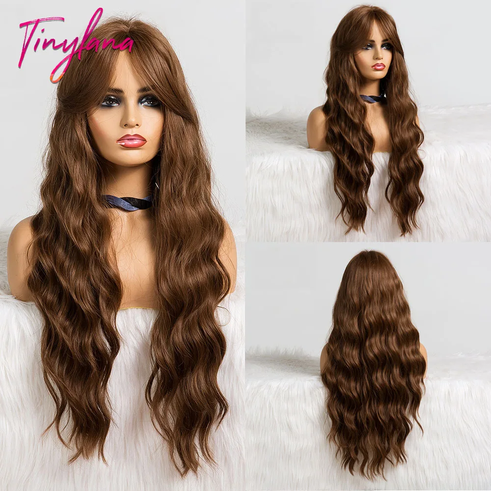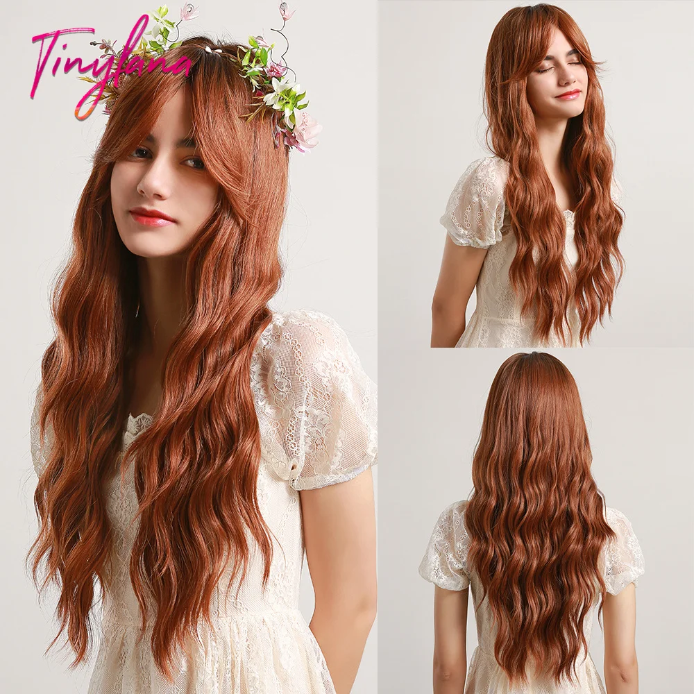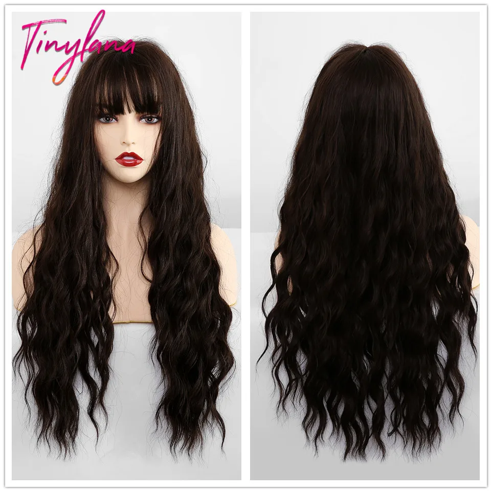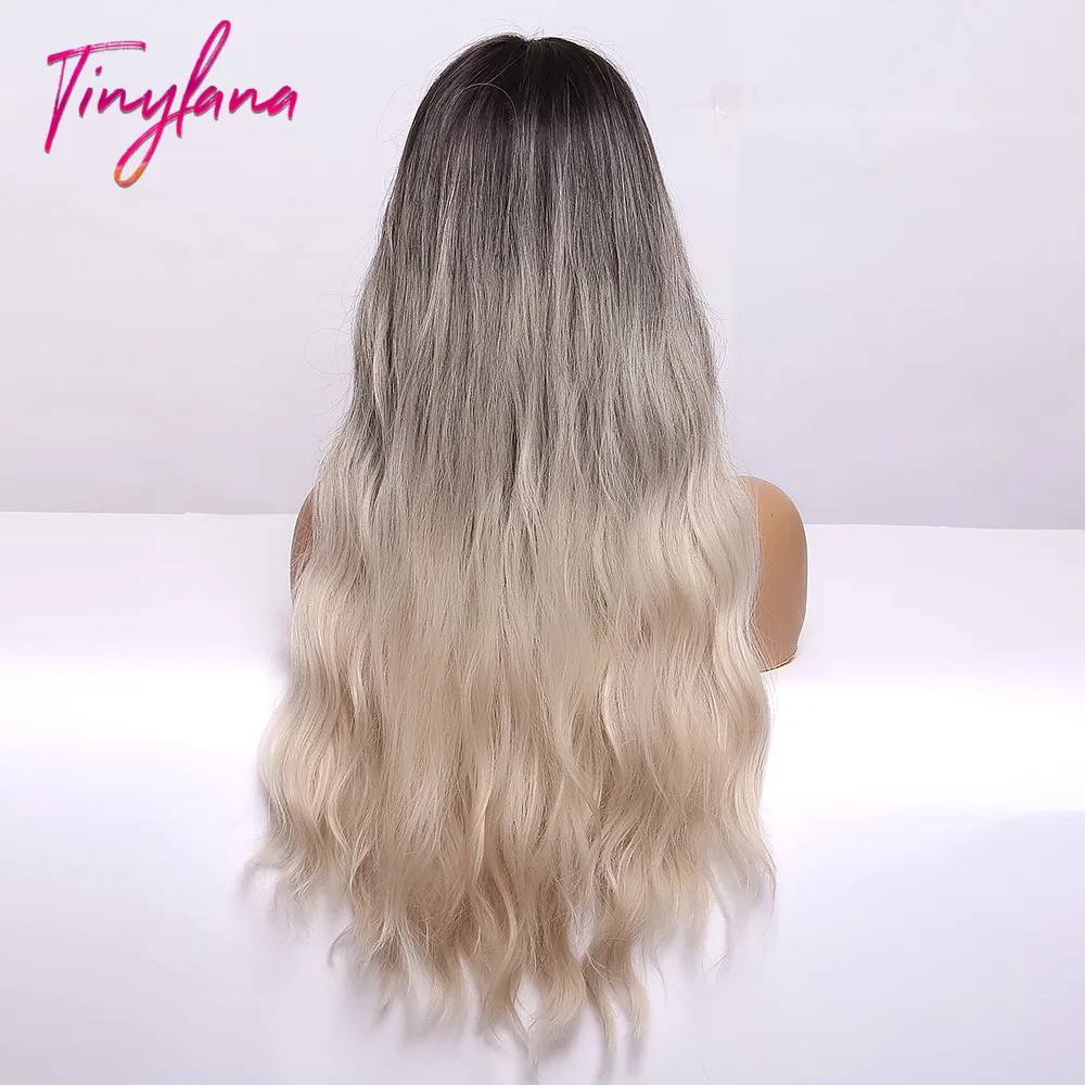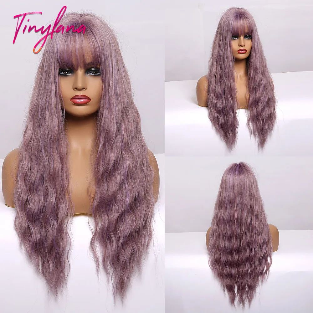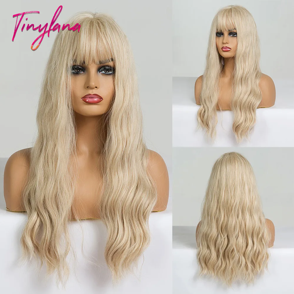 Крошечный LANA Ombre черный пепельный блонд парики с челкой длинные натуральные волнистые синтетические парики для черных женщин косплей ежедневно жаростойкие