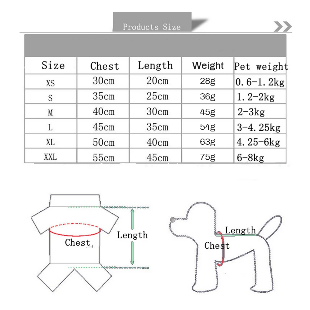 Размер: XS: 30*20 см (обхват груди * длина спины)