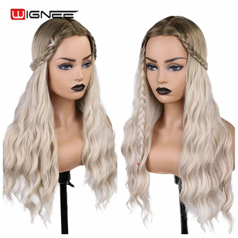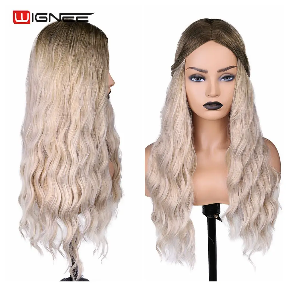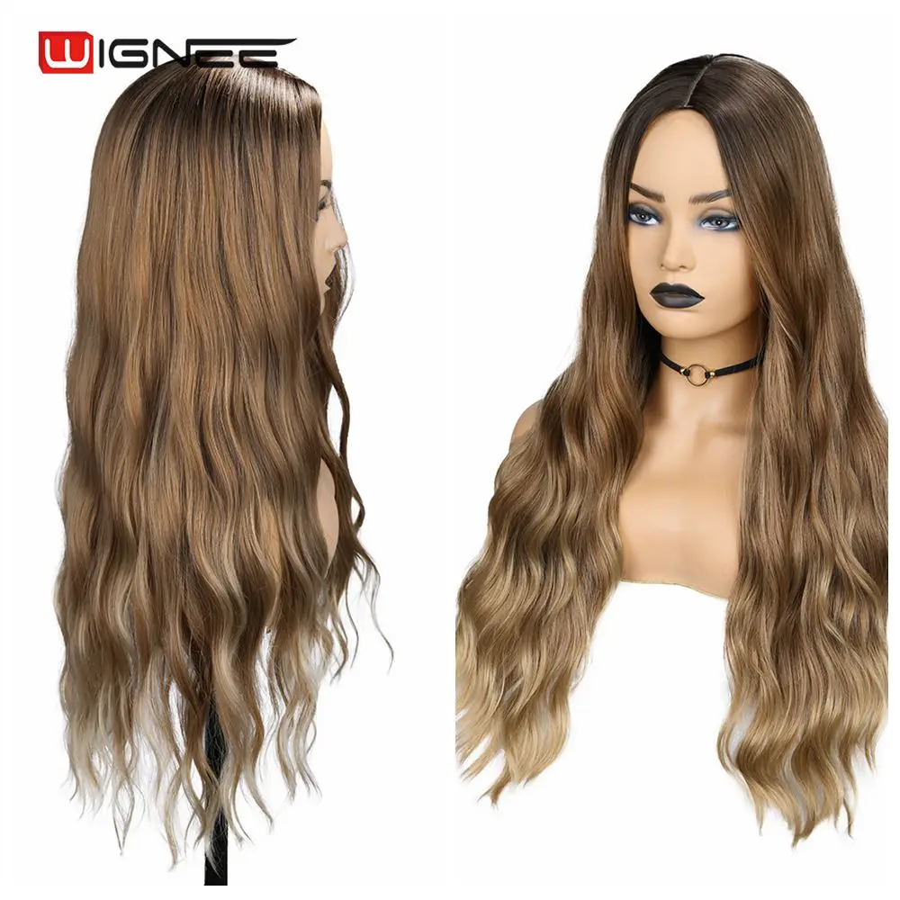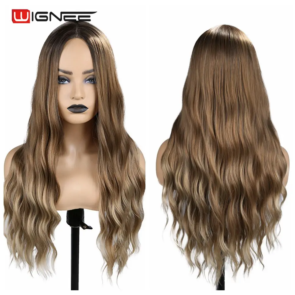 Wignee Ombre, коричневые синтетические парики для женщин, средняя часть, длинные волнистые натуральные волосы для американского волокна, повседневные/вечерние/Косплей парики для волос