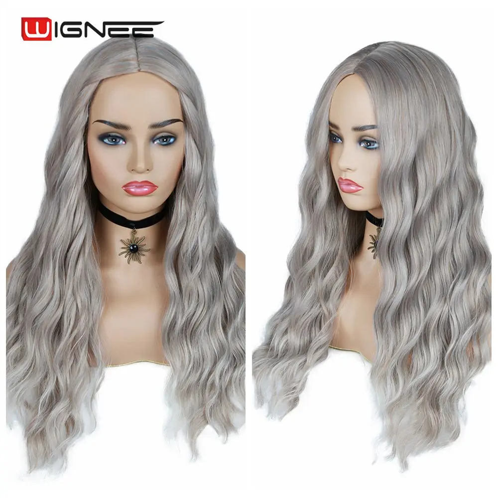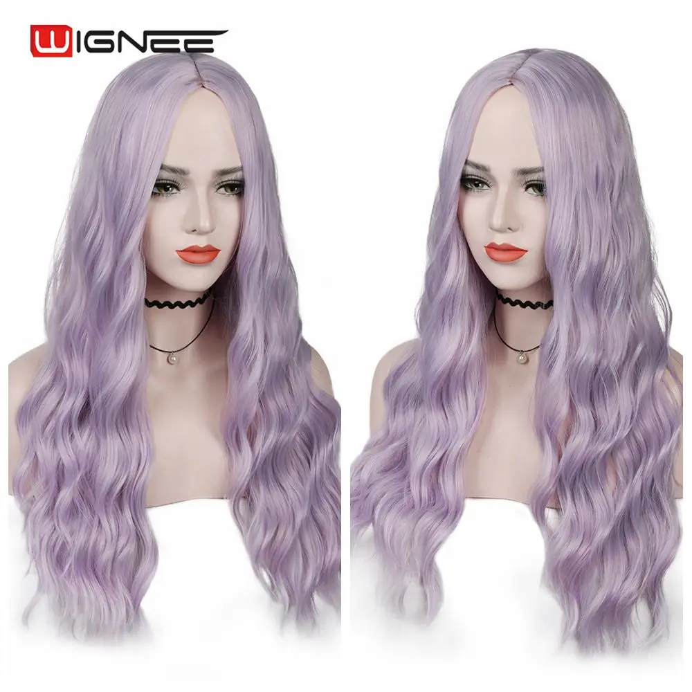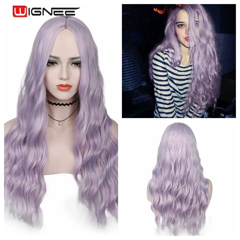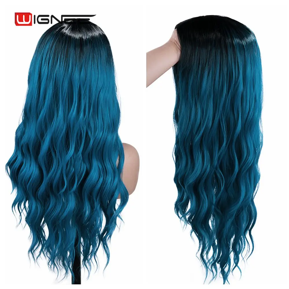 Wignee Ombre, коричневые синтетические парики для женщин, средняя часть, длинные волнистые натуральные волосы для американского волокна, повседневные/вечерние/Косплей парики для волос