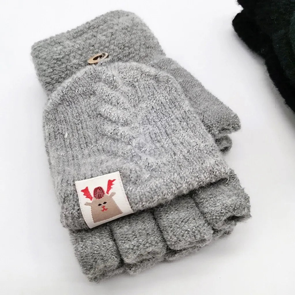 Детские зимние теплые вязаные откидные перчатки без пальцев