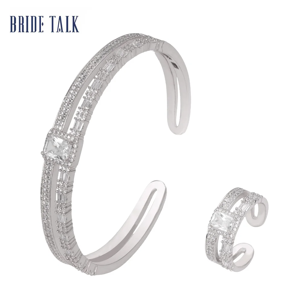 Свадебный разговор лучшие продажи 2019 продуктов Африканский роскошный микро проложенный багет кубический циркон регулируемый браслет кольцо наборы Полный Кристалл