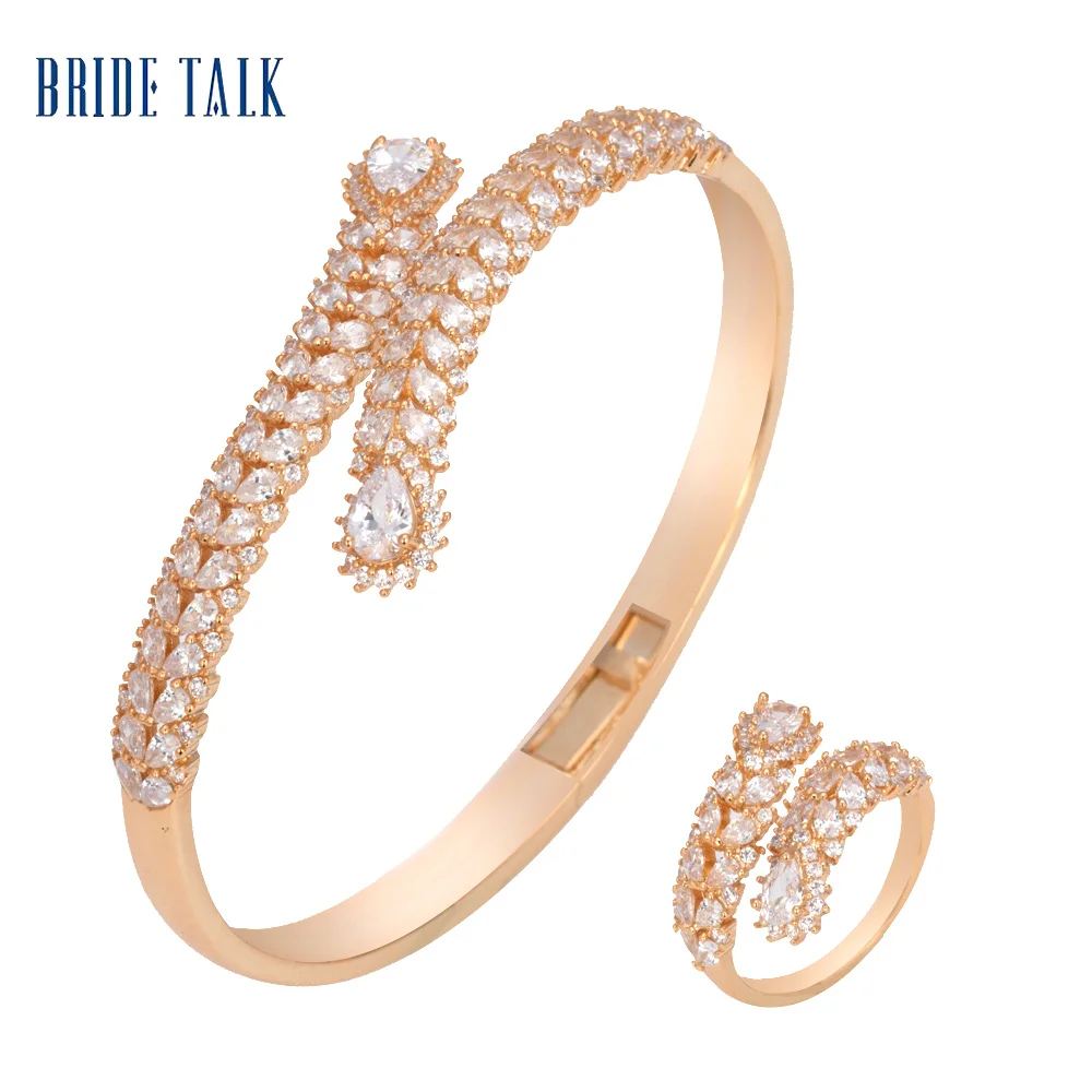 Невесты TALK Роскошные ювелирные изделия полный кристалл микро проложенный багет Блестящий кубический циркон регулируемый браслет кольцо наборы Дубай Медь Ювелирные изделия