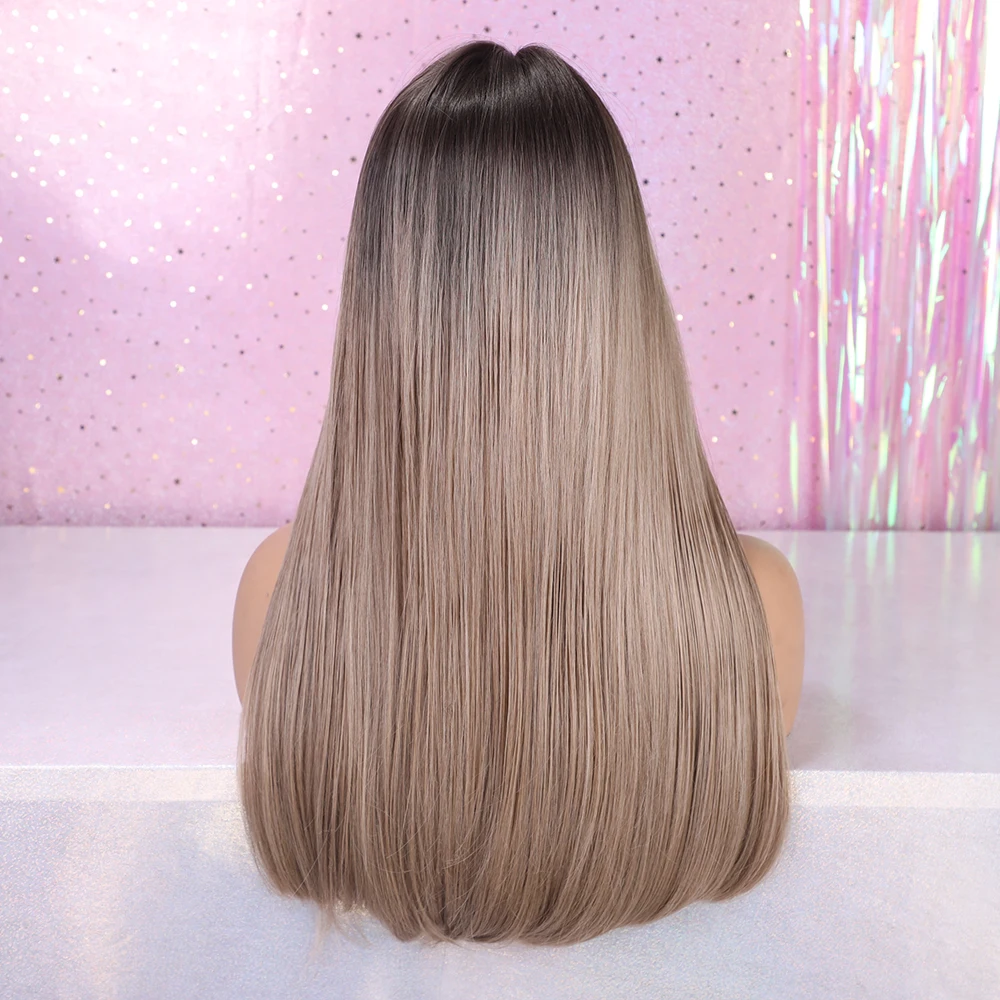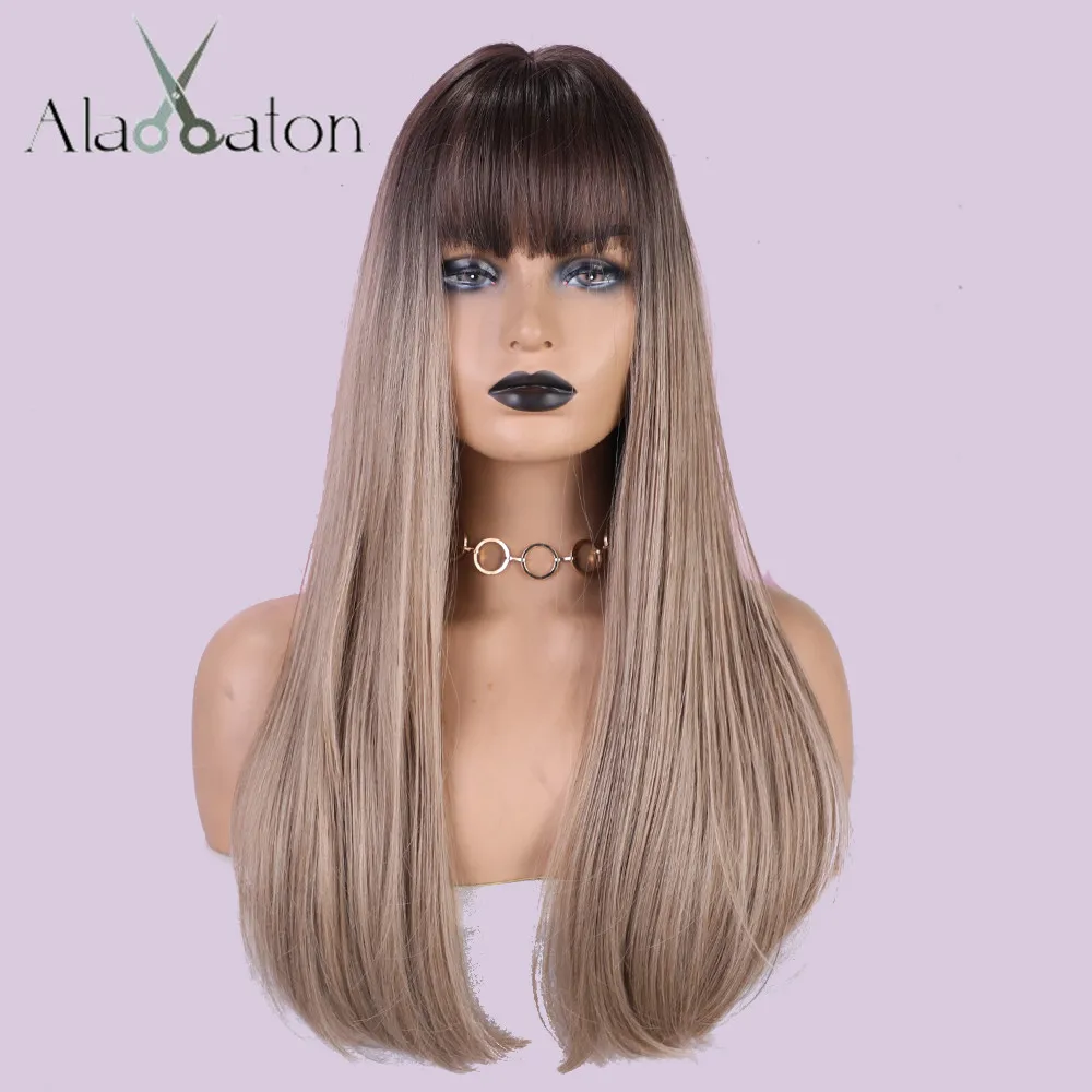 ALAN EATON, Длинные прямые парики с челкой, Омбре, черные, коричневые волосы, синтетические парики для женщин, высокая температура, волокно, клубный парик, косплей