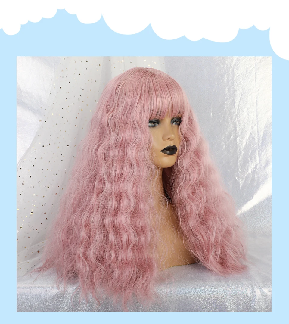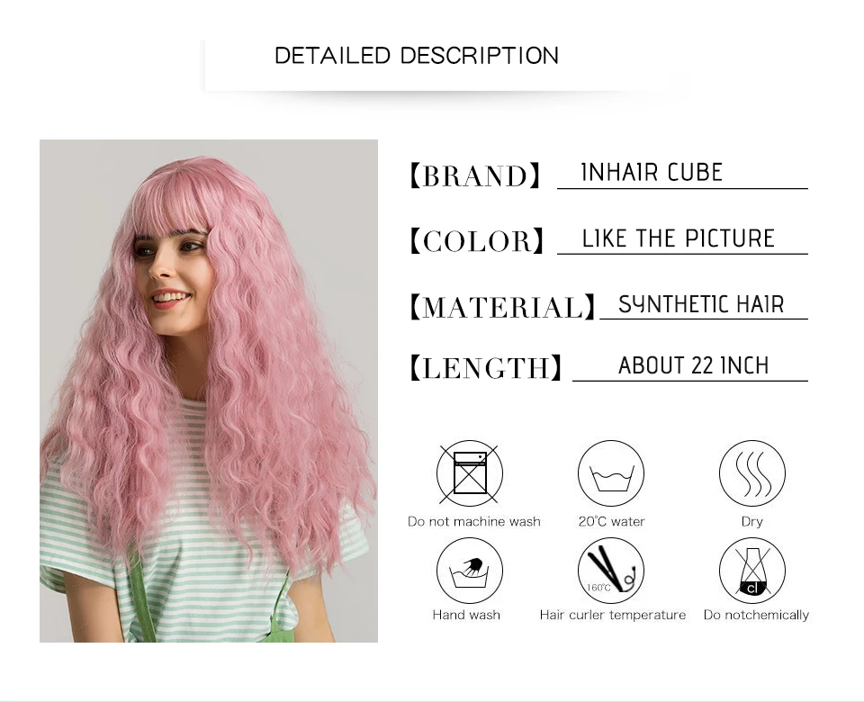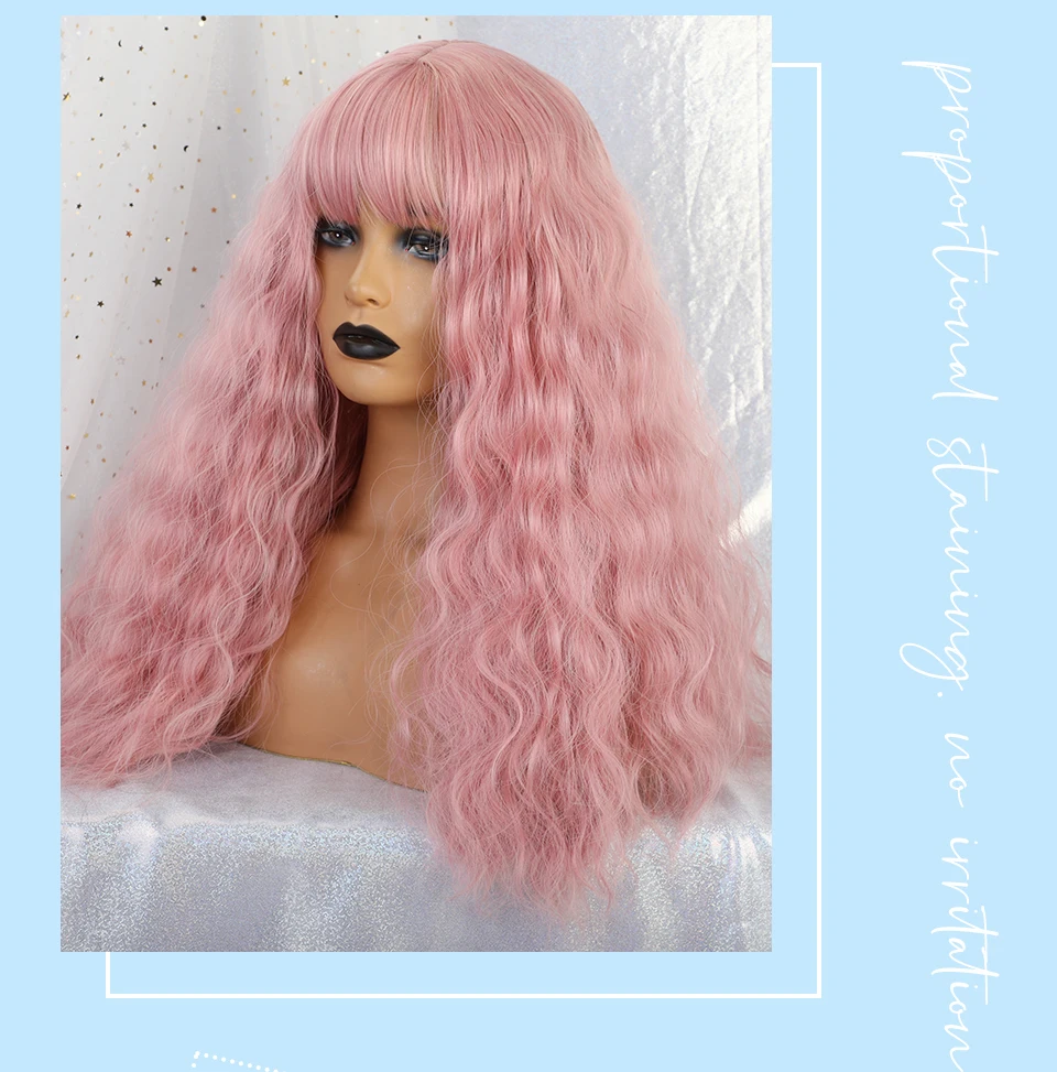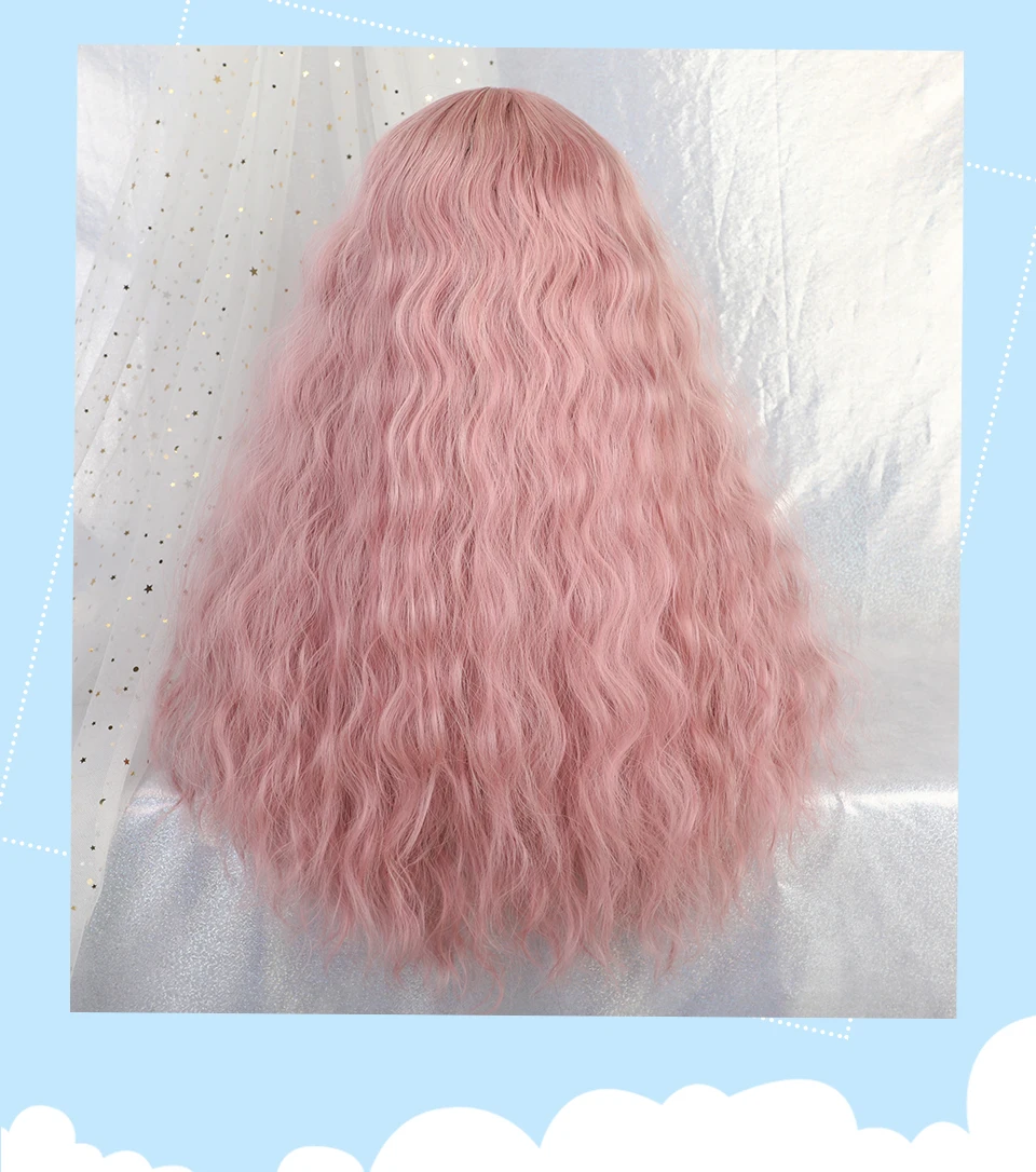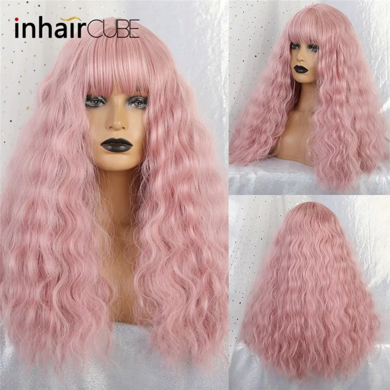 Inhaircube 22 "Кудрявые Длинные розовые синтетические волосы женские парики с челкой пастельные натуральные два цвета Harajuku парик Бесплатная доставка