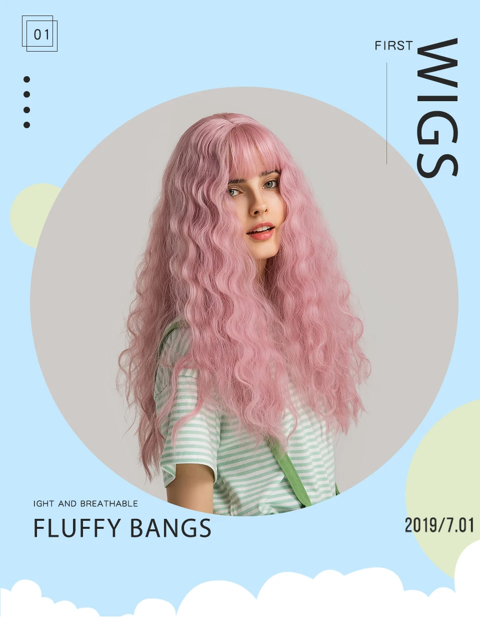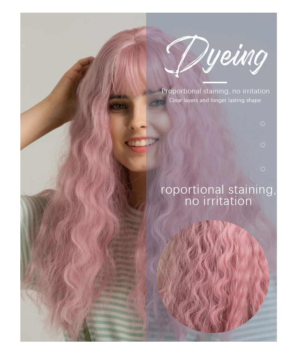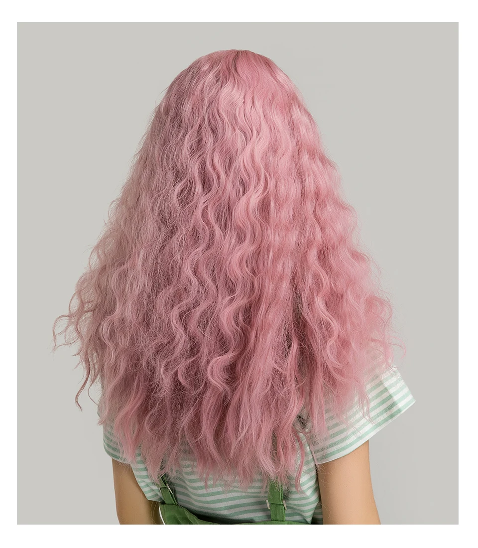 Inhaircube 22 "Кудрявые Длинные розовые синтетические волосы женские парики с челкой пастельные натуральные два цвета Harajuku парик Бесплатная доставка