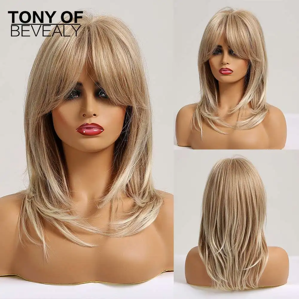 Длинные волнистые многослойный парик с челкой коричневый блонд Омбре парики для афро женщин Косплей термостойкие натуральные синтетические парики