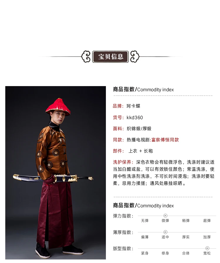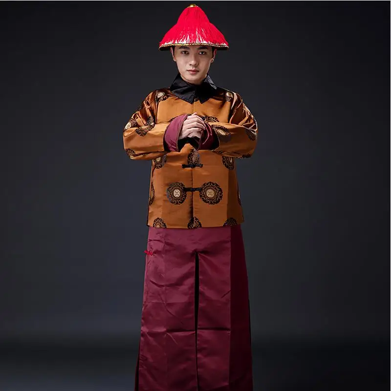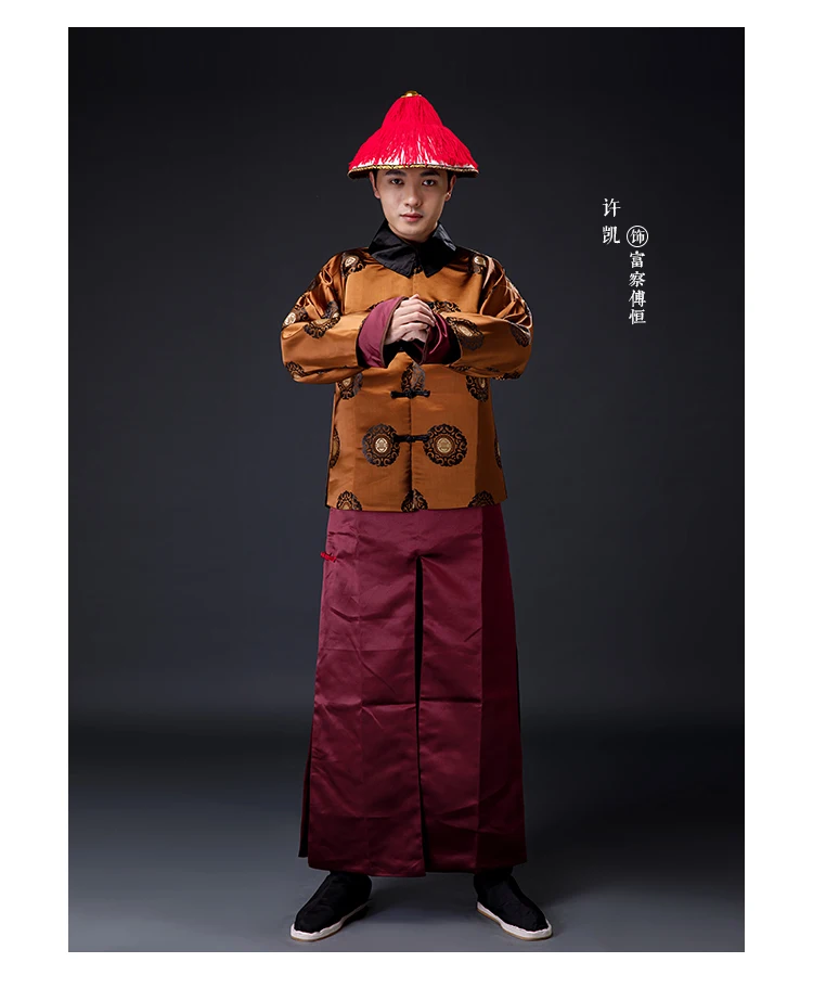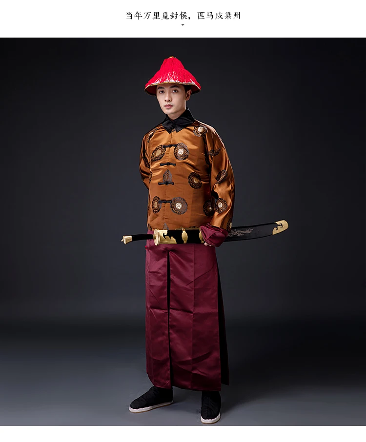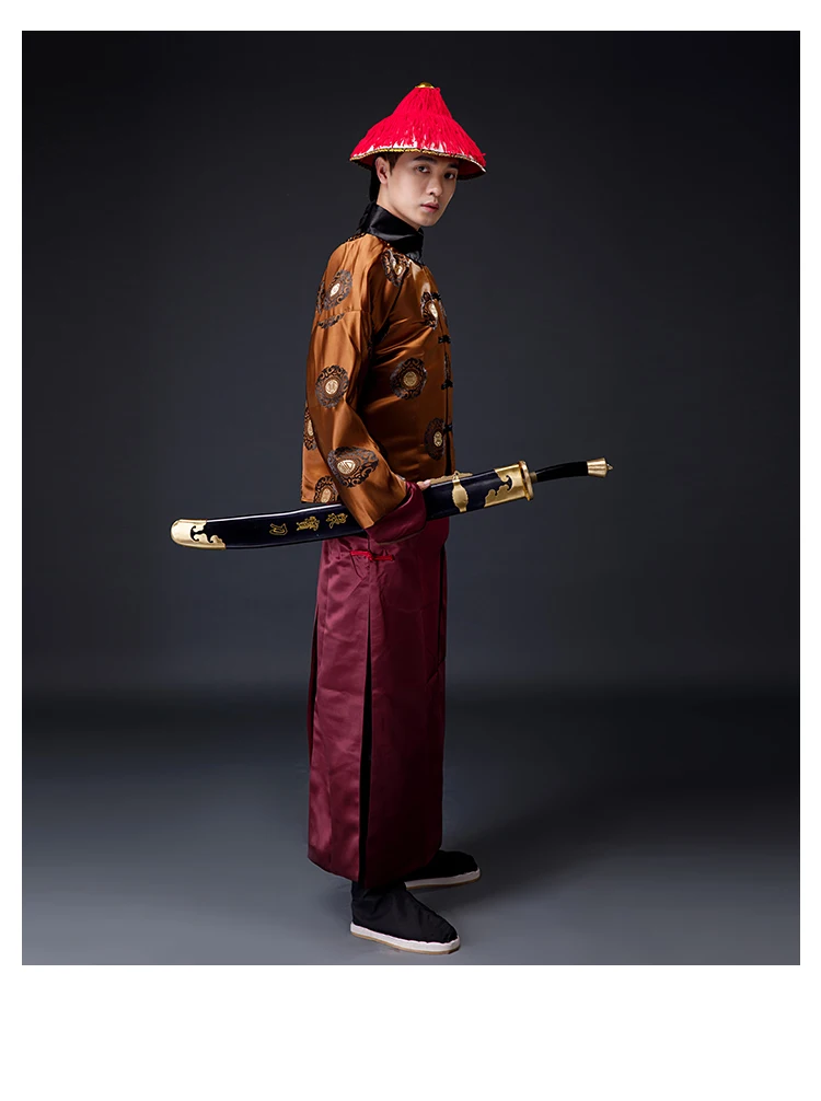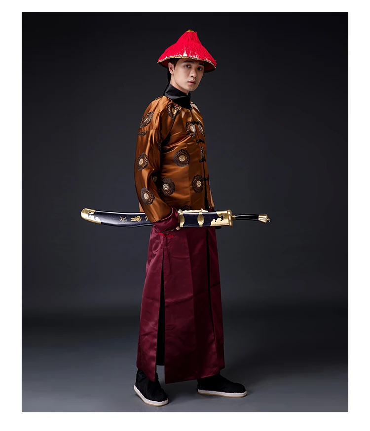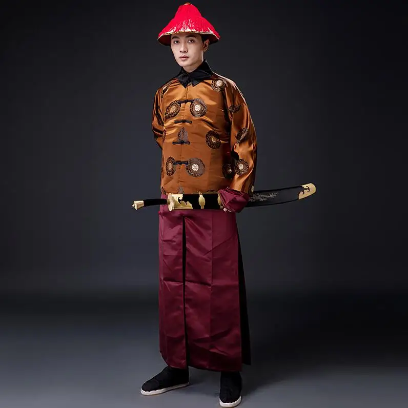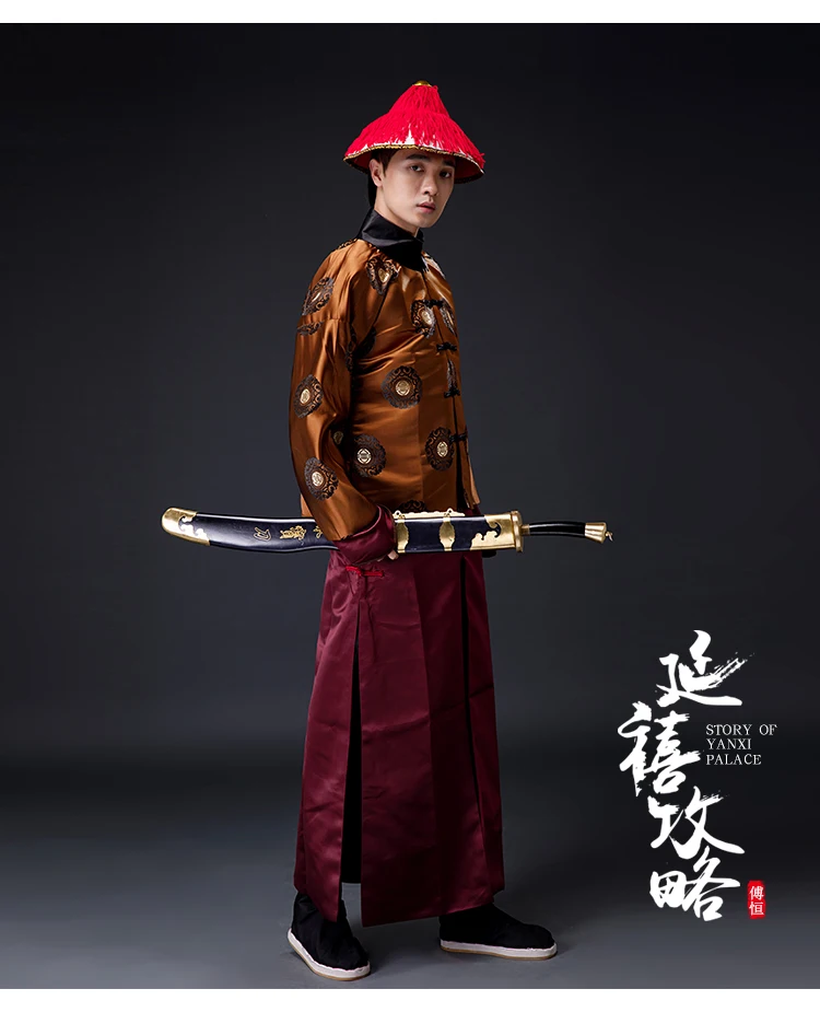 Film TV cosplay stage ancient Qing Dynasty handsome Migthy Guard Service prince talent male men costume hat +jacket +skirt Note: When you place the order, Please remark your height weight bust and waist size 1st... Thanks