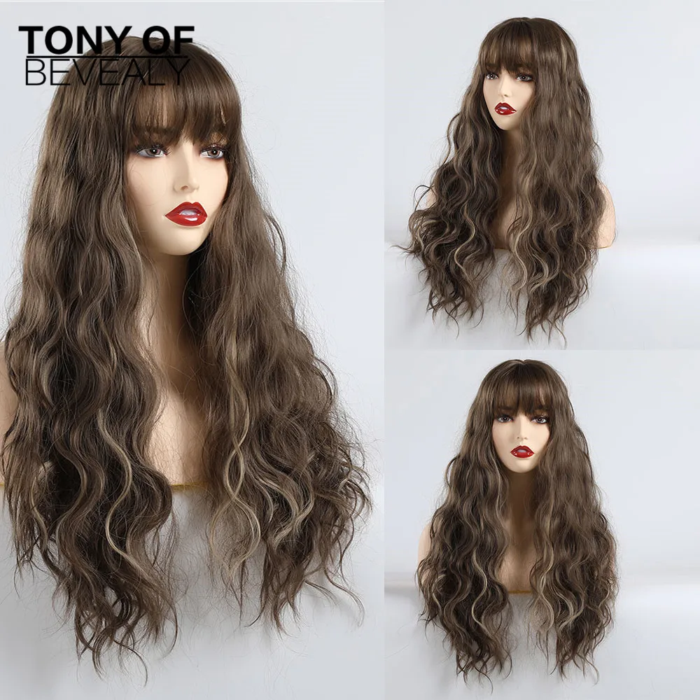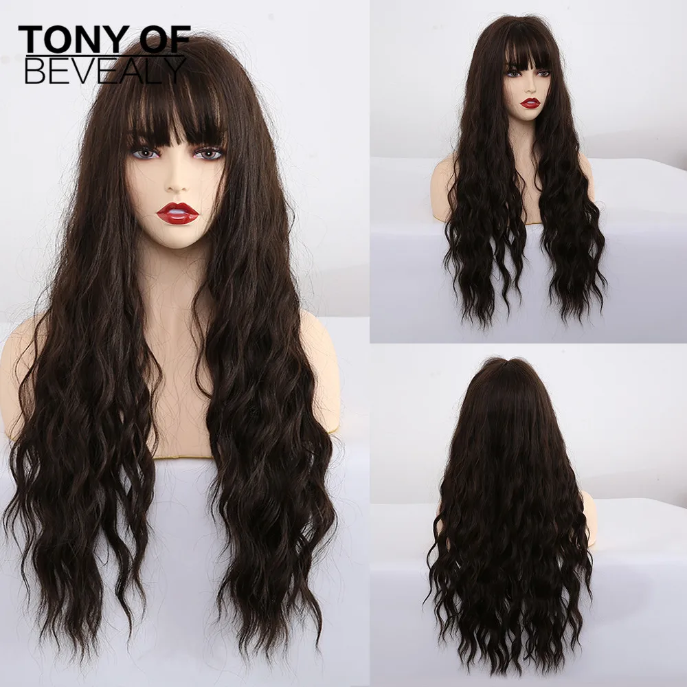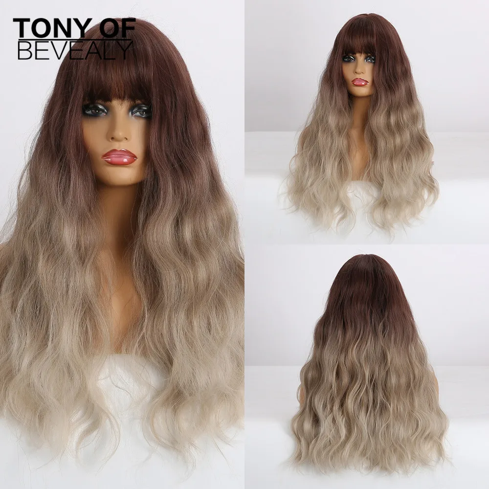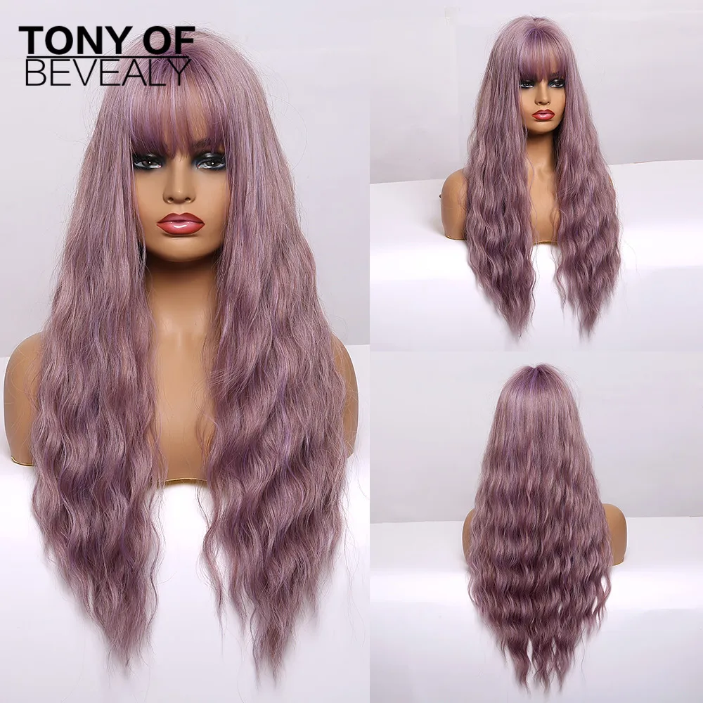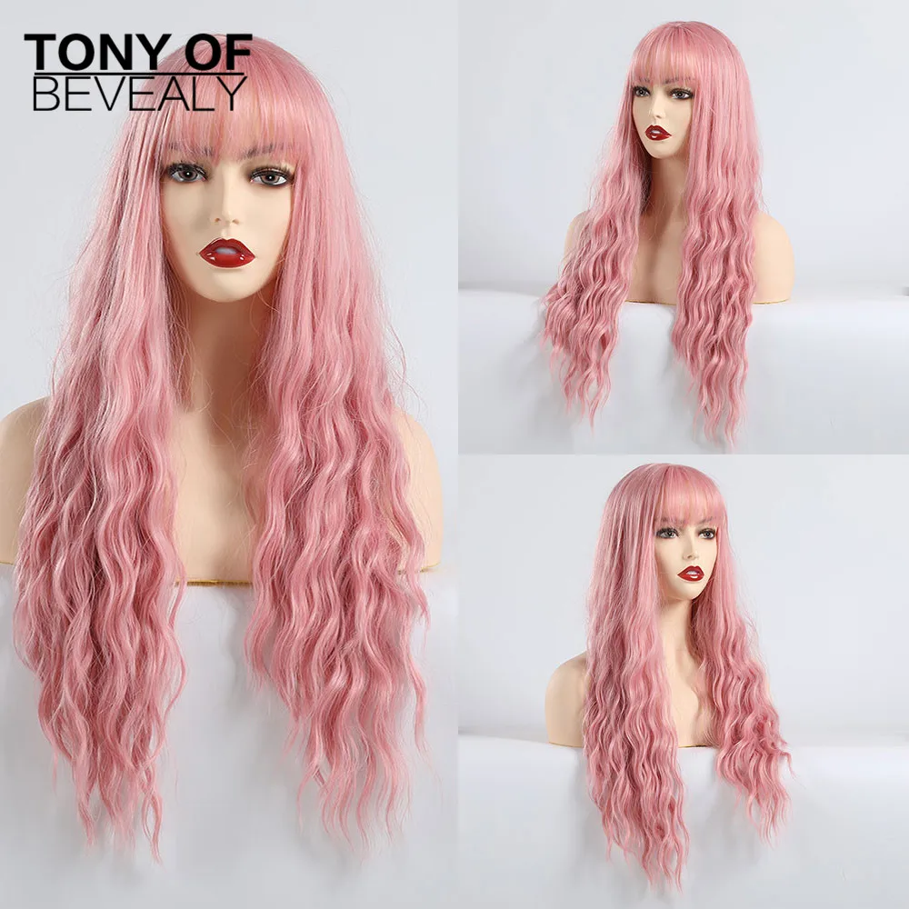 Длинные Волнистые Розовые натуральные парики с тонкой челкой термостойкие синтетические парики для афро женщин Косплей Костюм натуральные волосы парики
