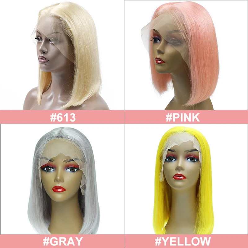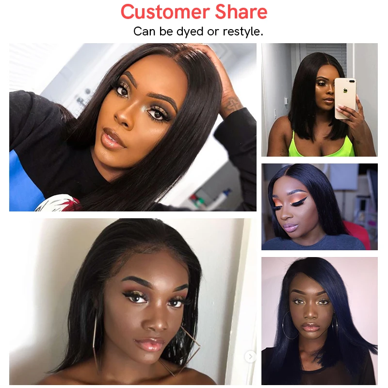 Бренд: Али, королева, Продукты для волос Текстура волос: прямой короткий парик Боба Тип волос: бразильские прямые парики 13x4 / 13x6 Длина: 8/10/12/14/16 дюйма Цвет волос: натуральный цвет, легко окрашивается, может быть окрашен до #27 Плотность париков: 180% Пробор: короткие парики для Боба средней части Легко менять стиль