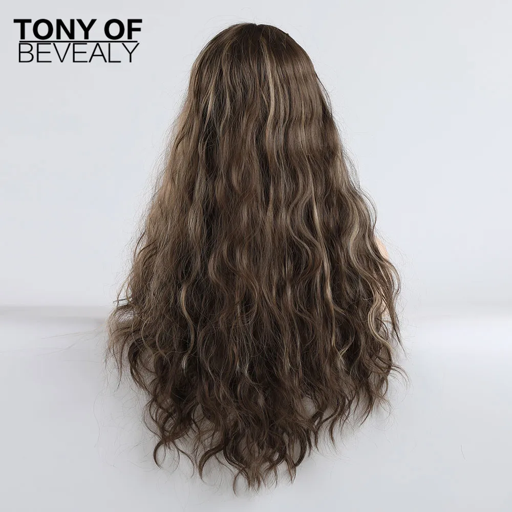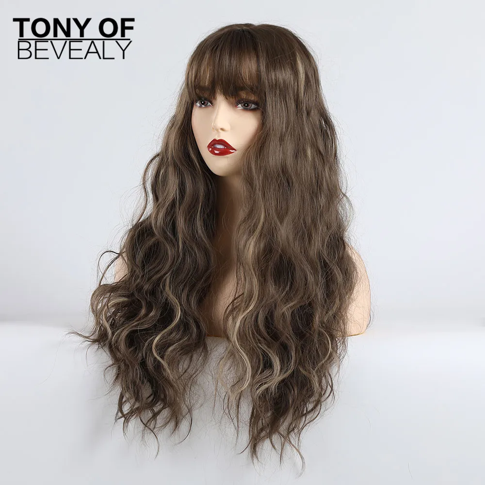 Синтетические длинные волнистые афро натуральные волосы парики с челкой для черных женщин Коричневые Серые волнистые парики с челкой Термостойкое волокно