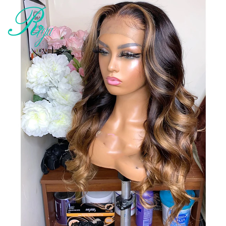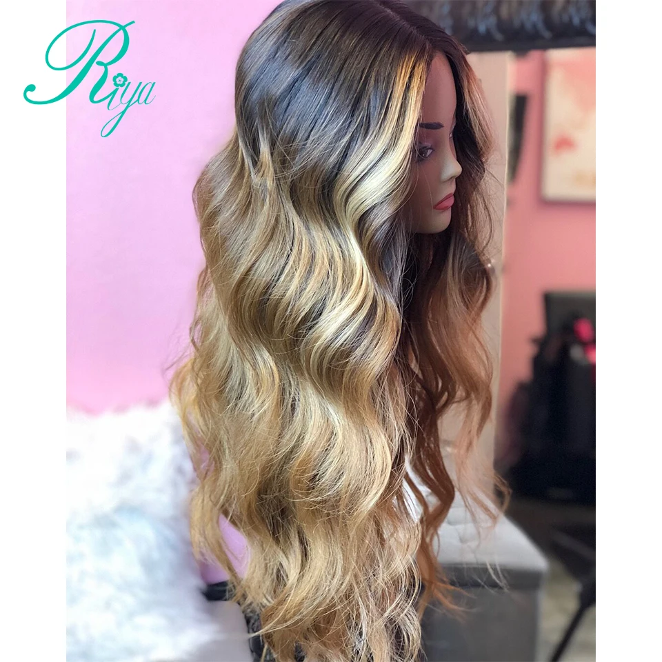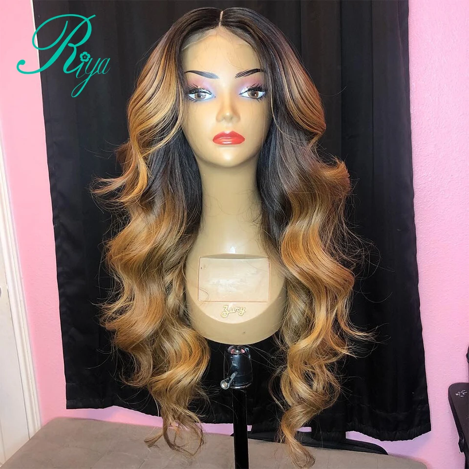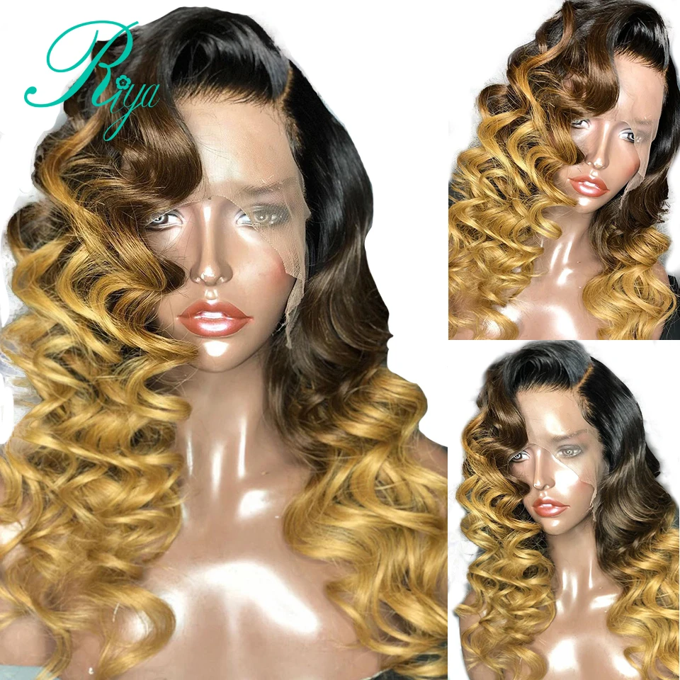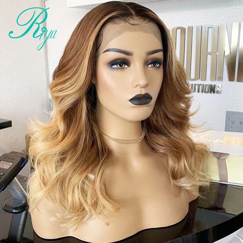 13X6 Мёд блондинка с эффектом деграде (переход от темного к Цветной Синтетические волосы на кружеве парики из натуральных волос на кружевной высокий коэффициент 8-24 150% предварительно закрытие волнистый парик бразильский Реми рия