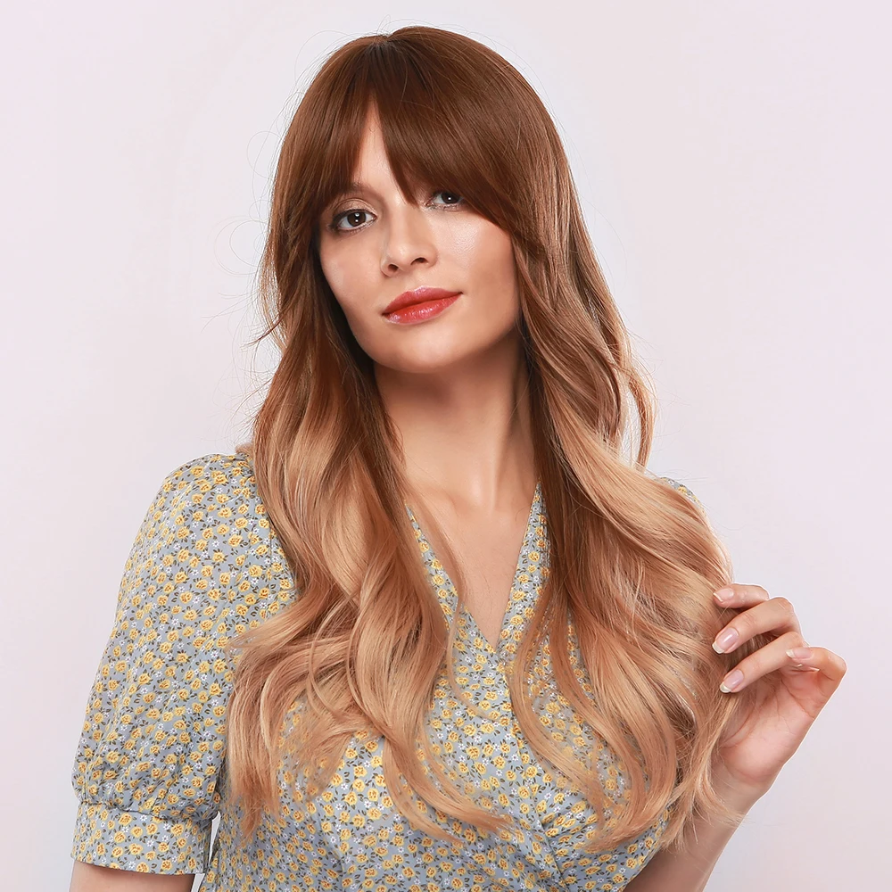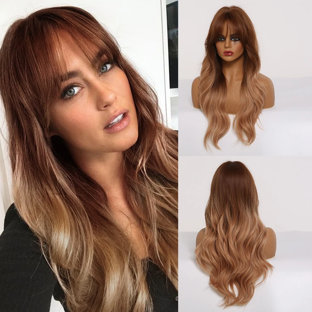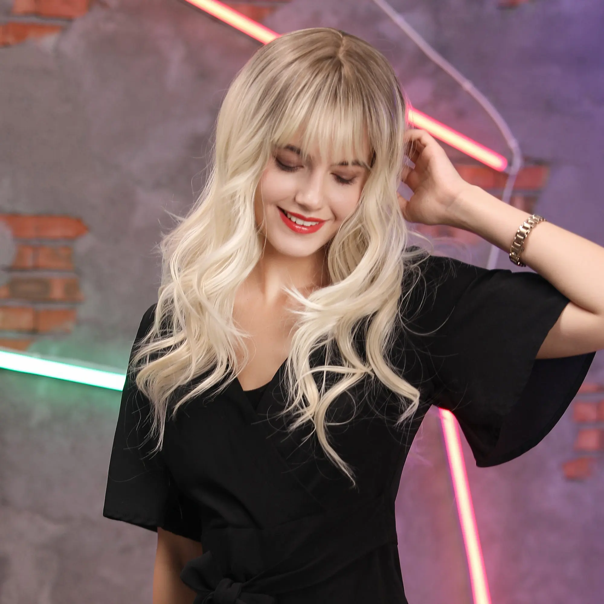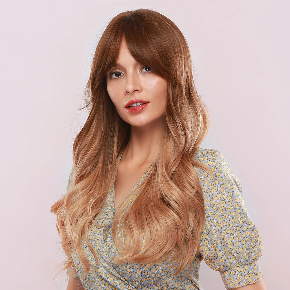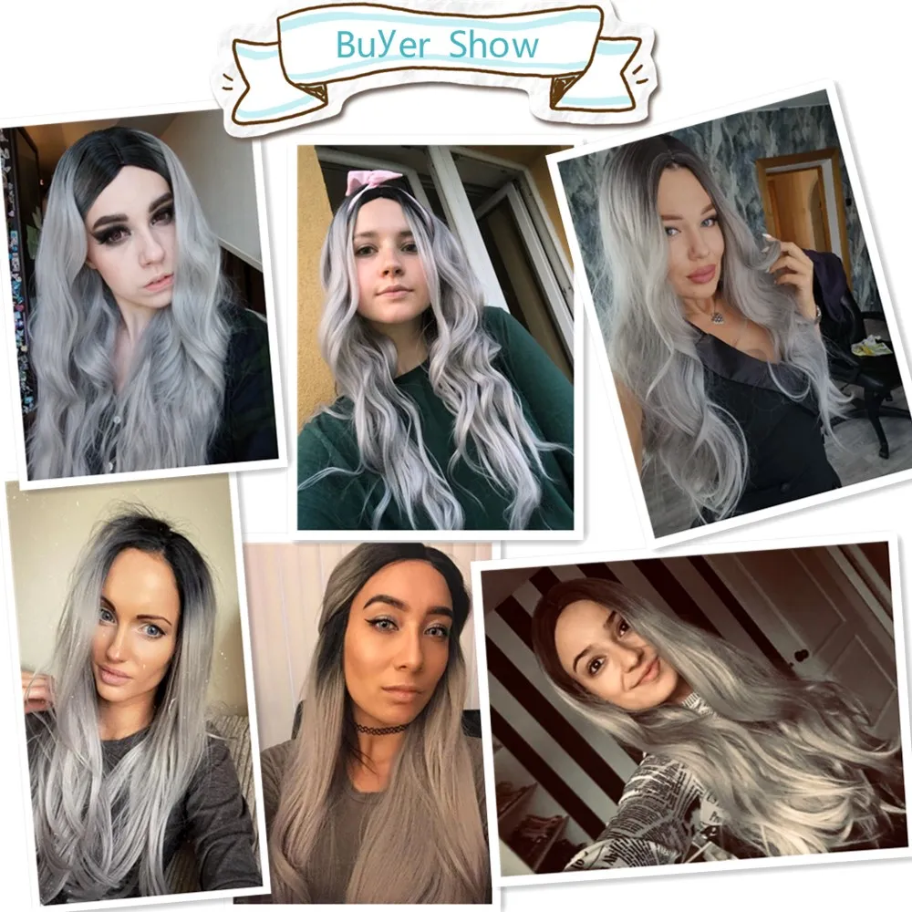 Блондинка Единорог синтетические натуральные волнистые длинные волосы парики с боковой челкой темный корень Омбре коричневый Повседневный парик для белых и черных женщин